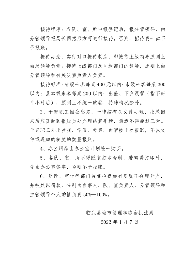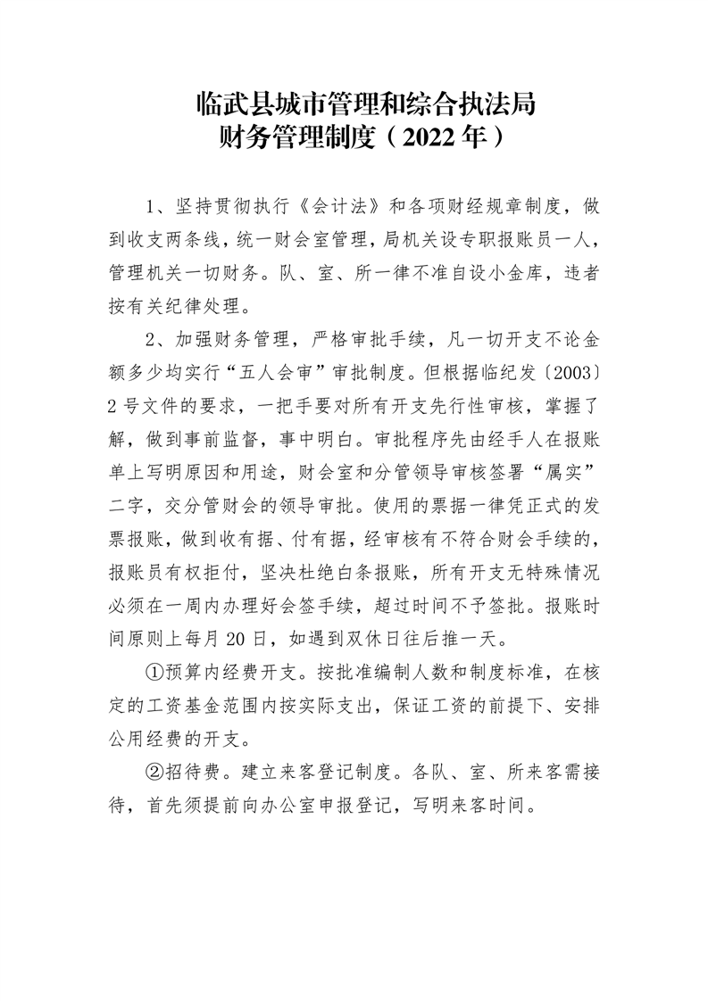 临武县城市管理和综合执法局财务管理制度(2022年)