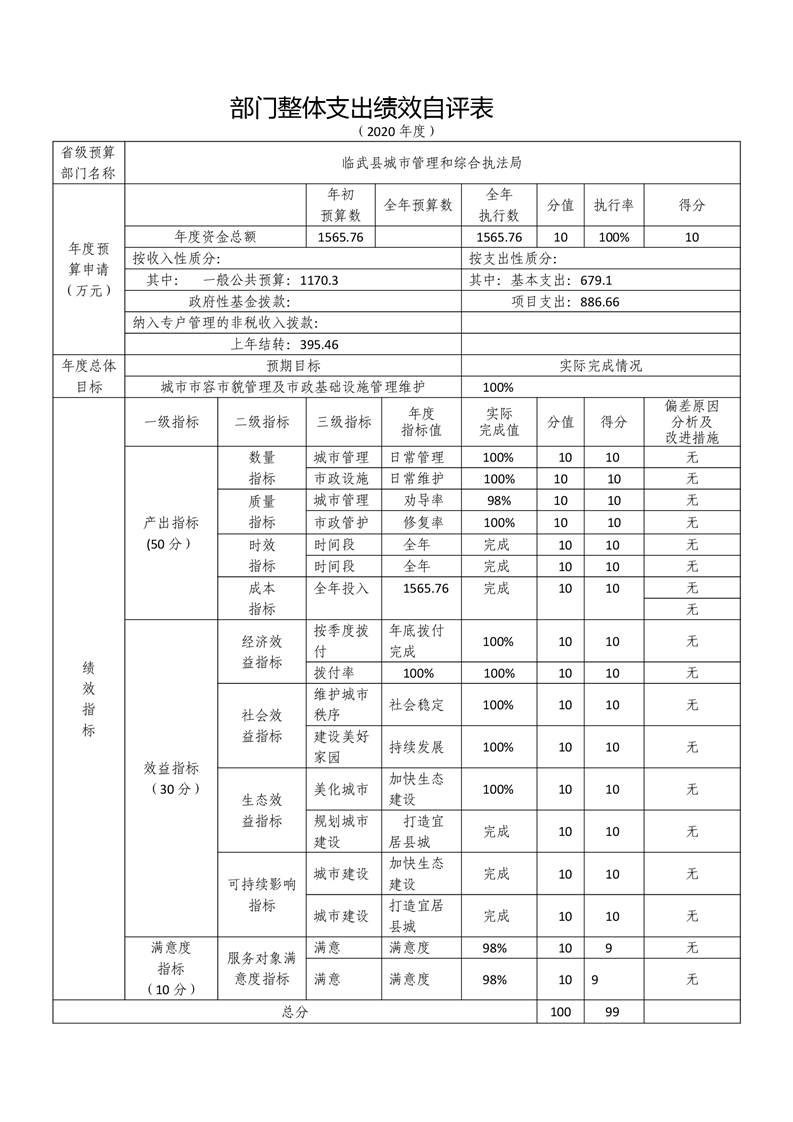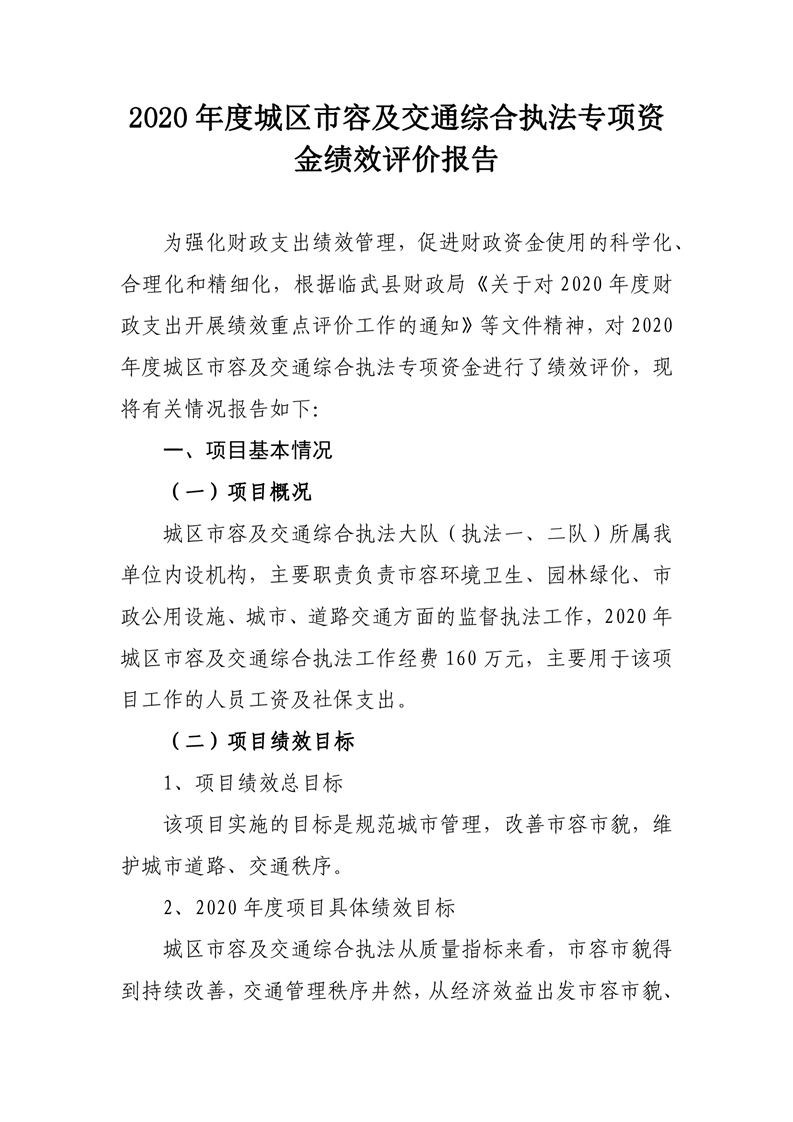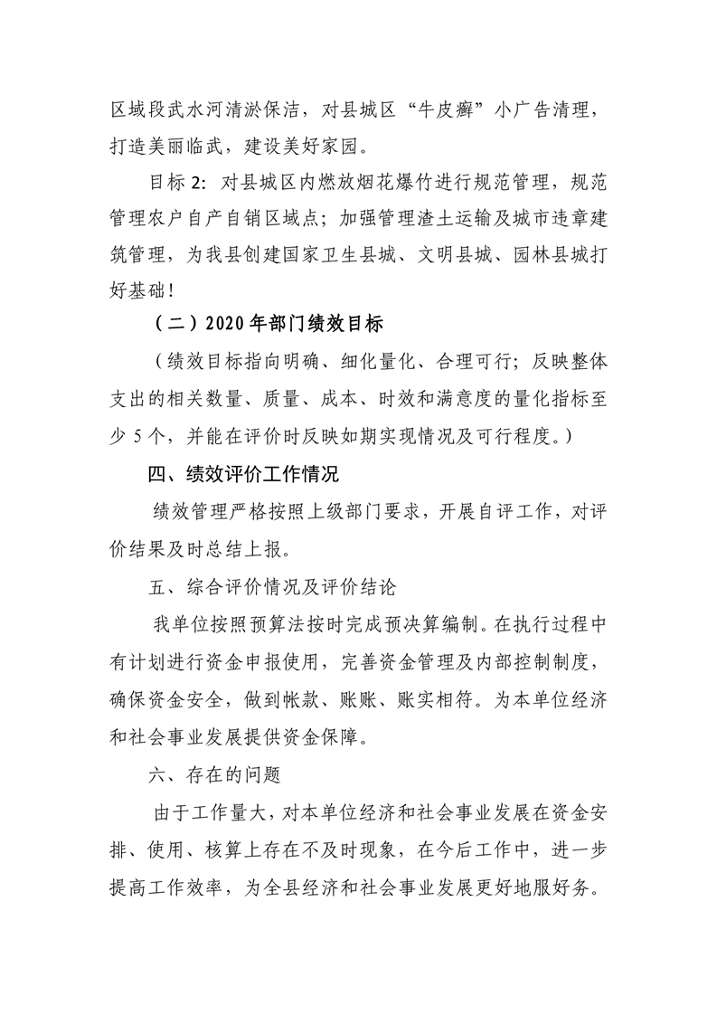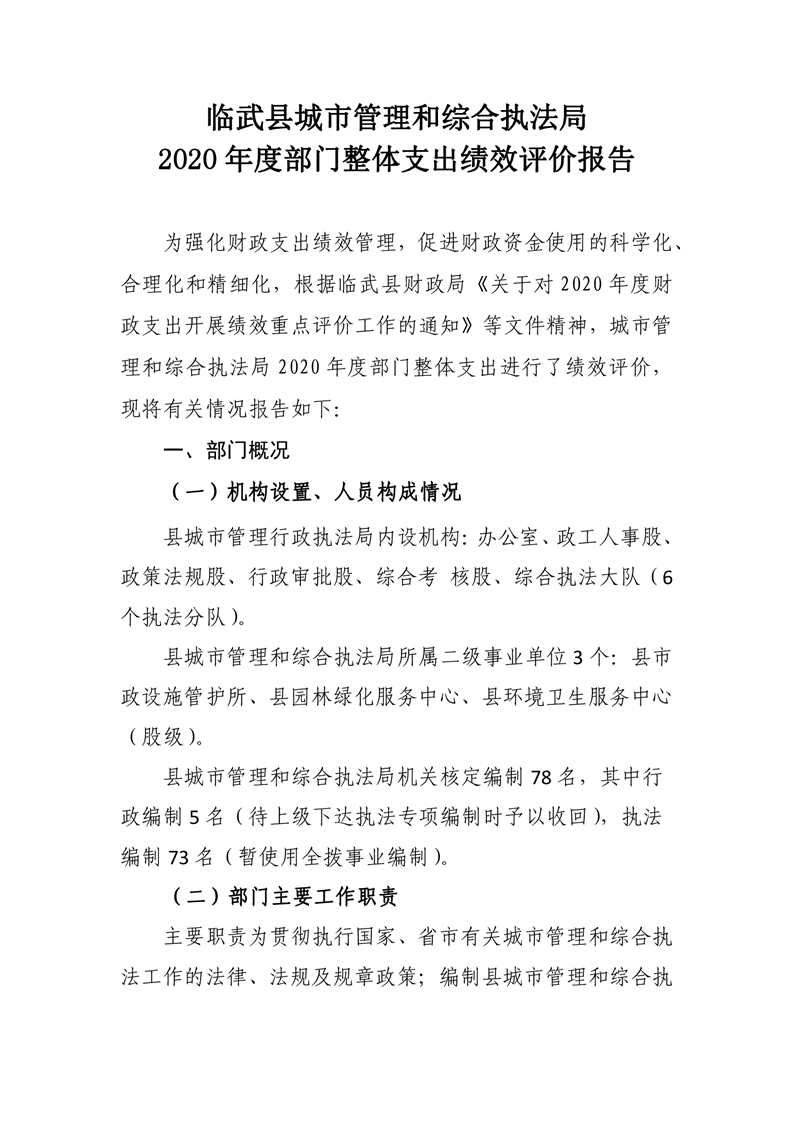 临武县城市管理和综合执法局2020年部门整体支出绩效评价报告