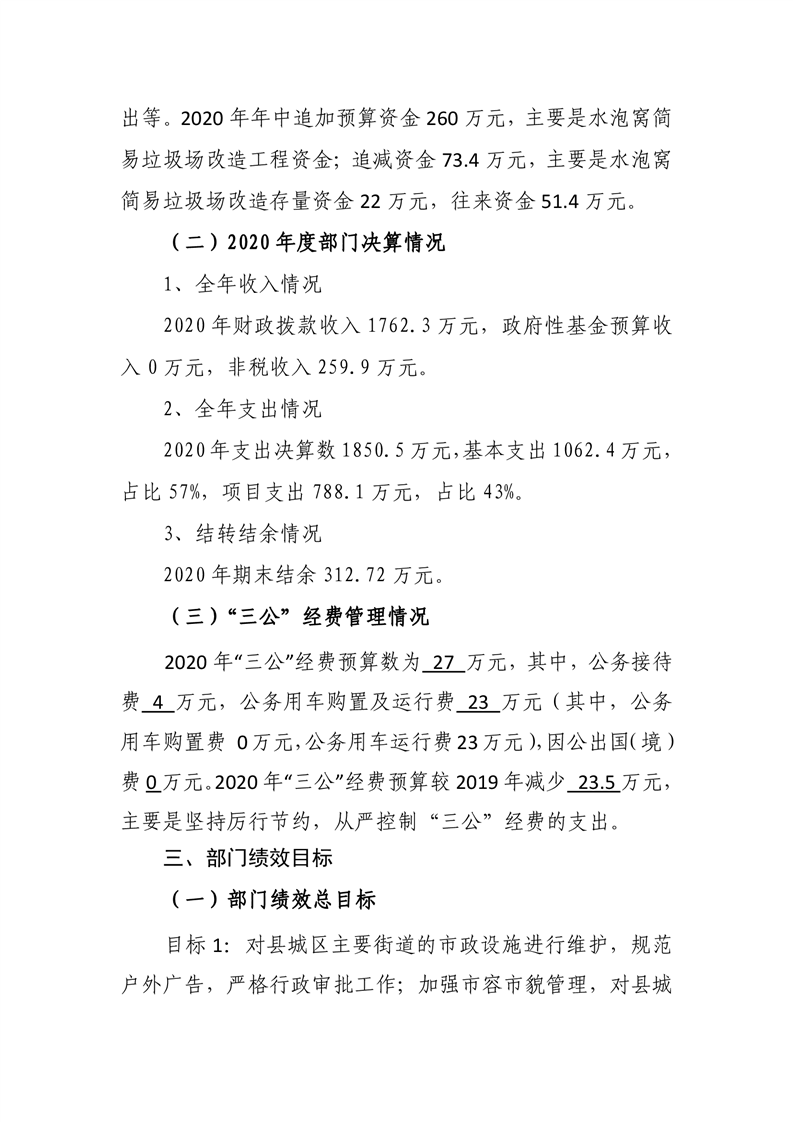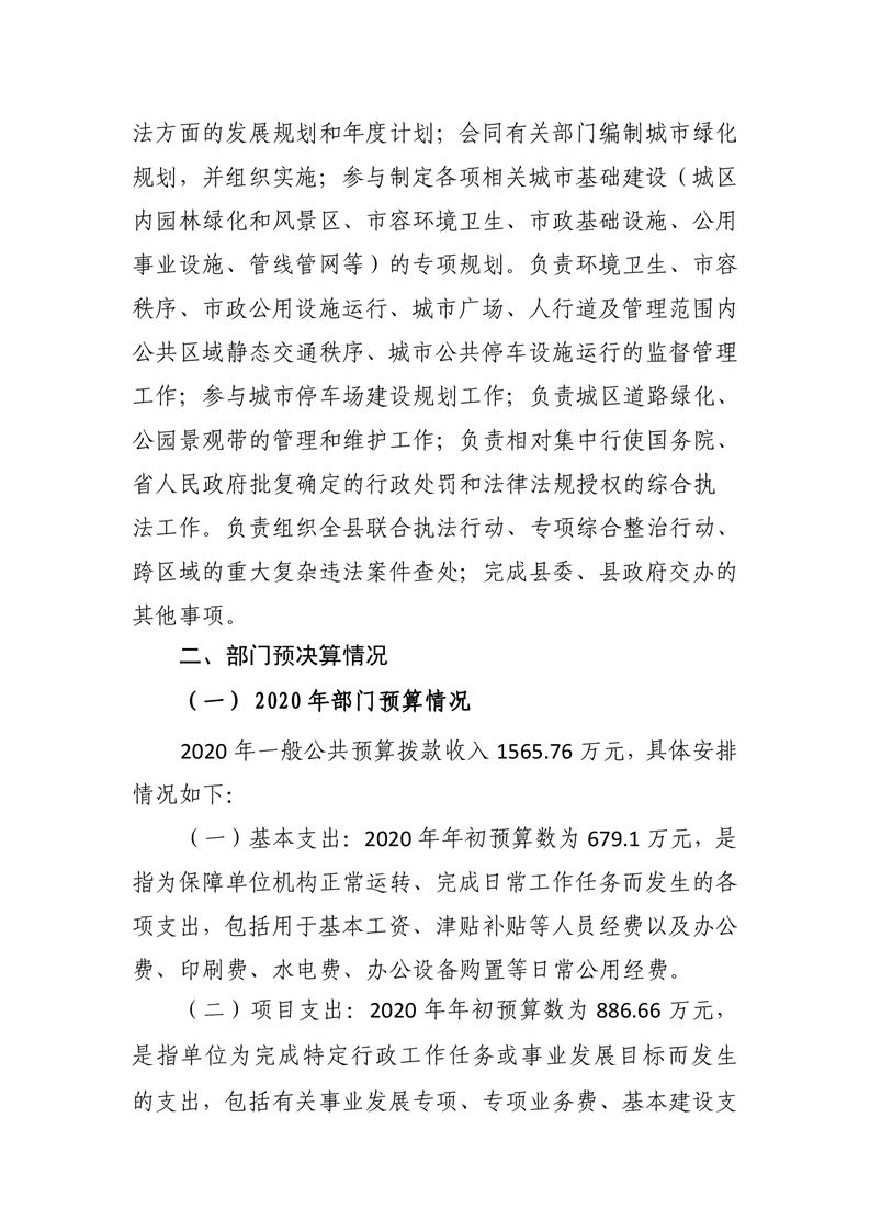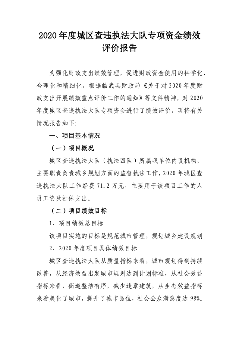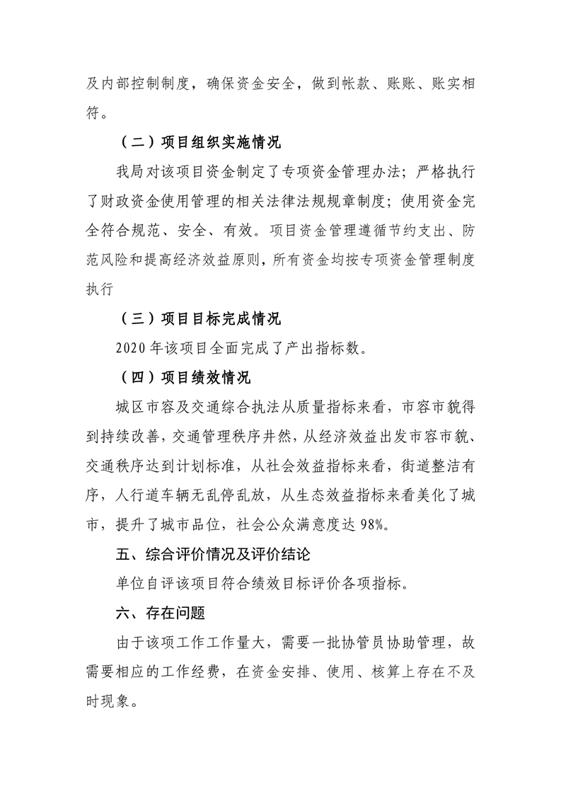临武县城市管理和综合执法局2020年部门整体支出绩效评价报告