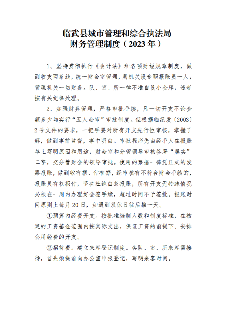 临武县城市管理和综合执法局财务管理制度(2023年)