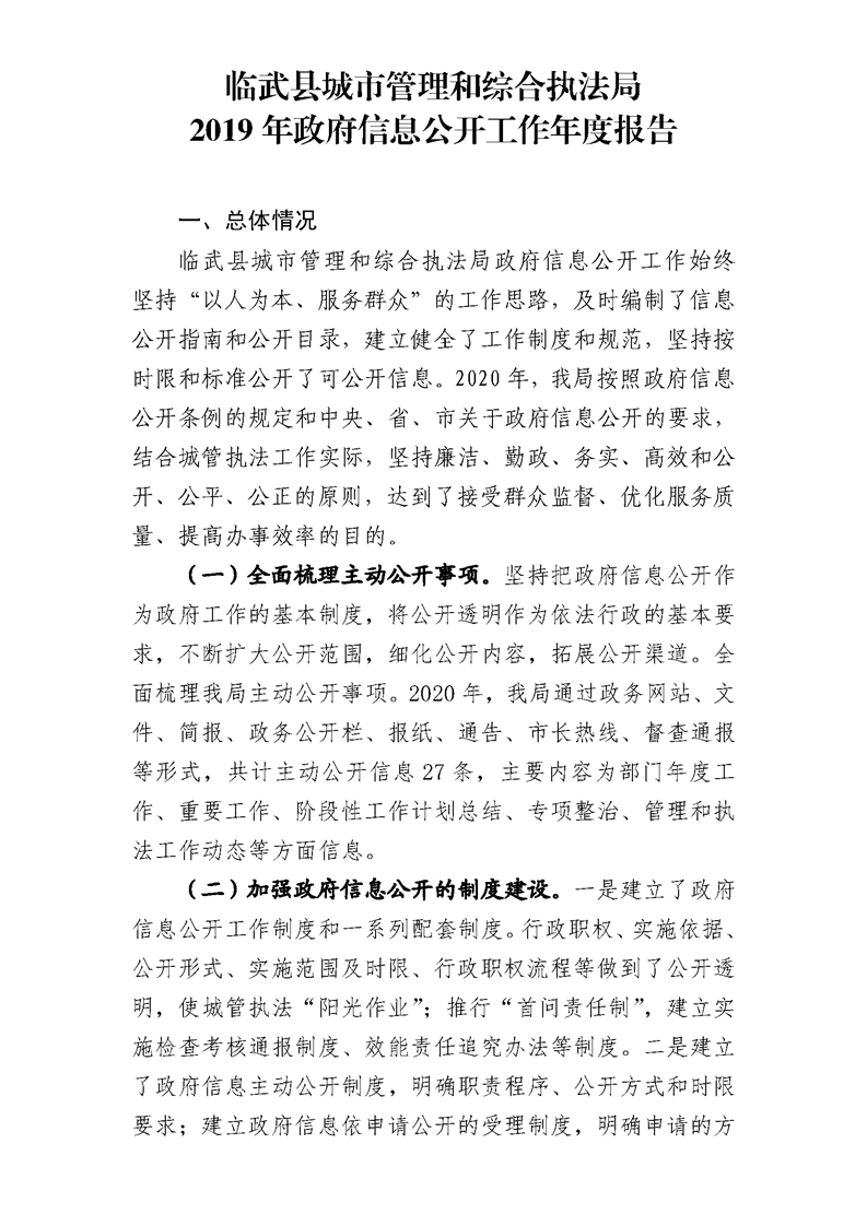 临武县城市管理和综合执法局2020年政府信息公开工作年度报告
