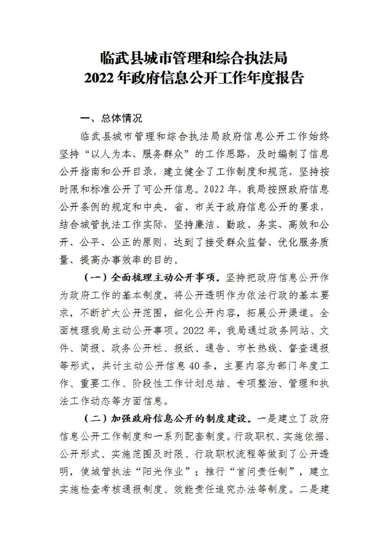 临武县城市管理和综合执法局2022年政府信息公开工作年度报告