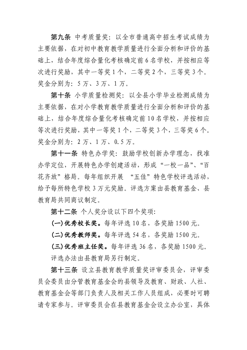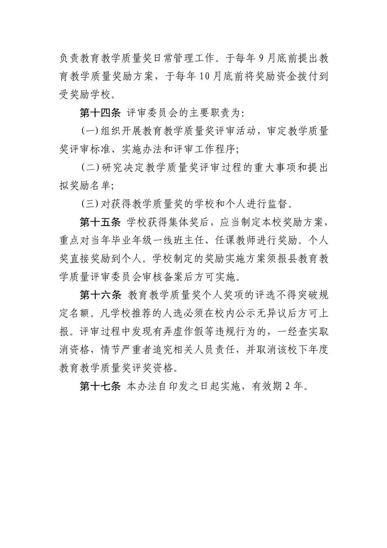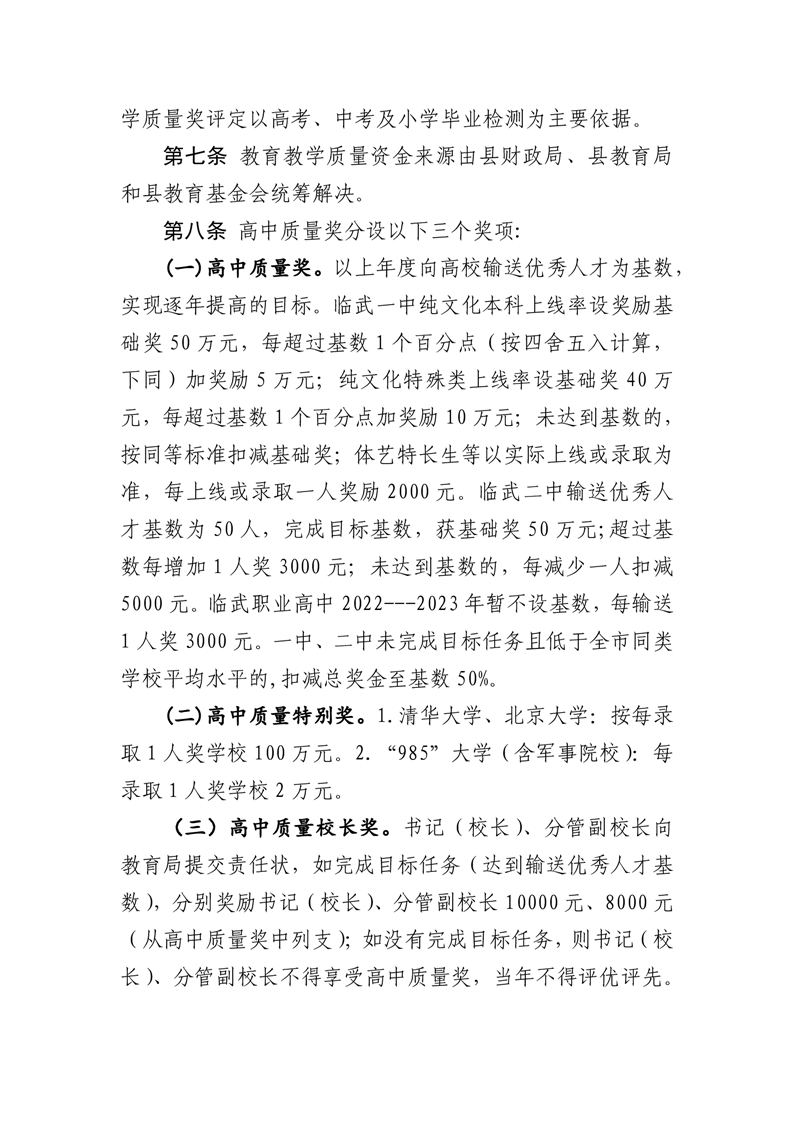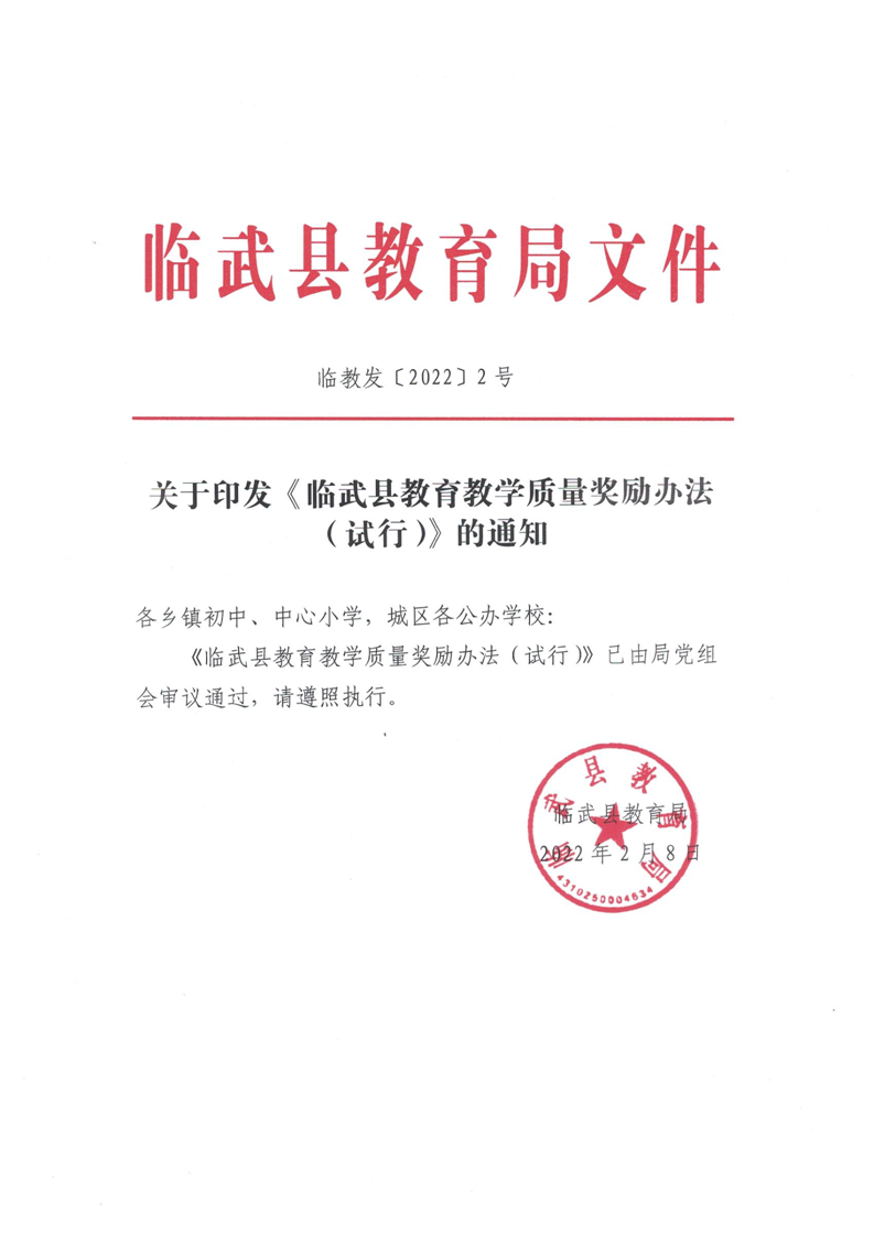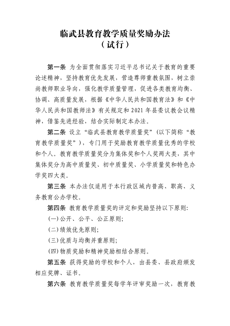 关于印发《临武县教育教学质量奖励办法(试行)》的通知