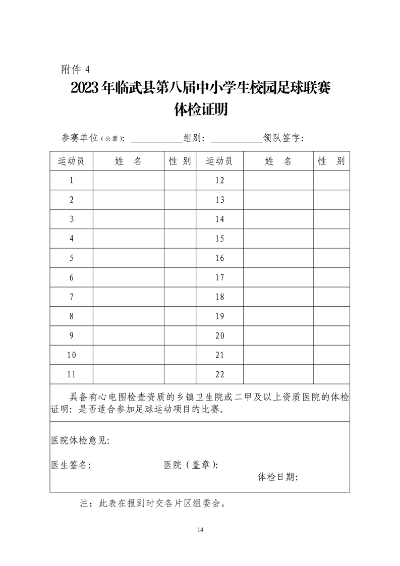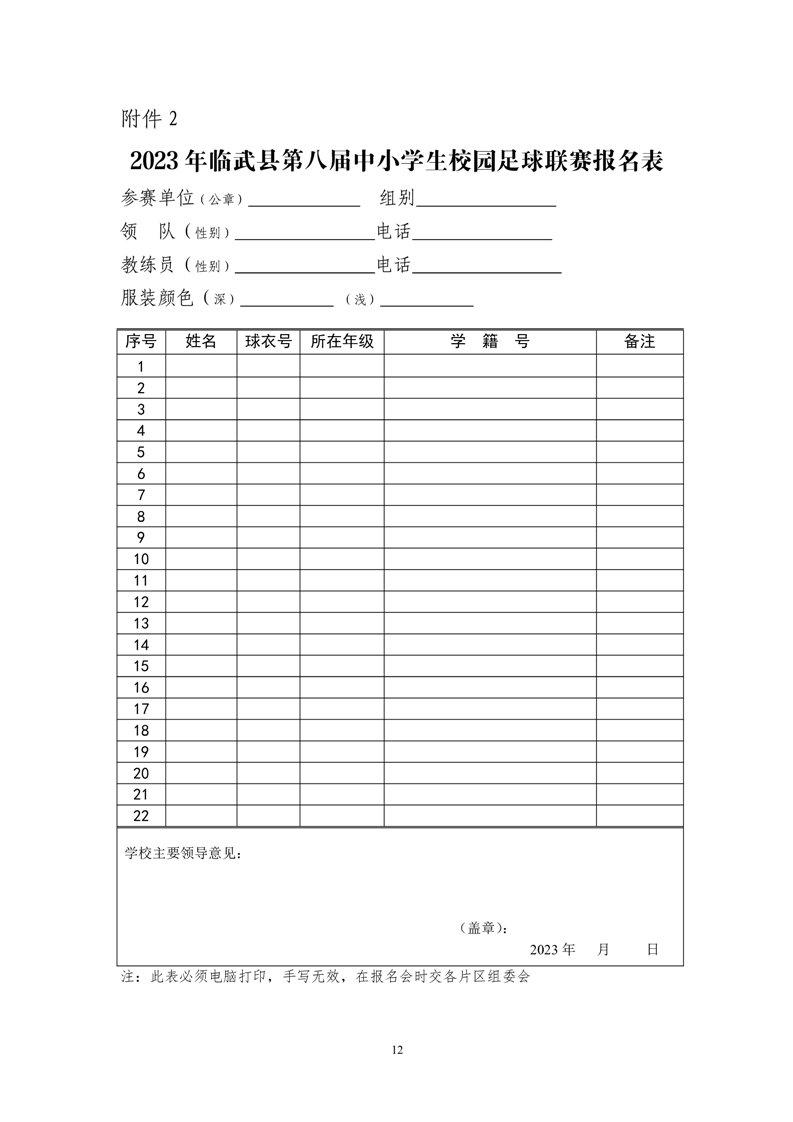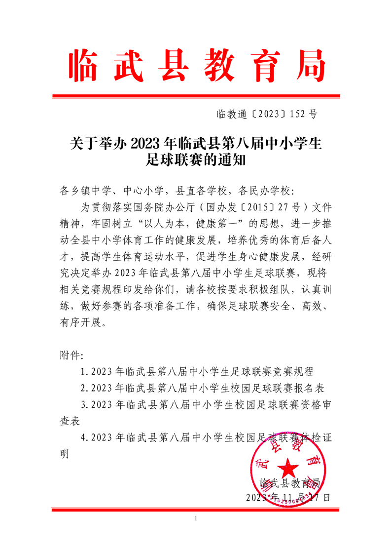 关于举办2023年临武县第八届中小学生足球联赛的通知