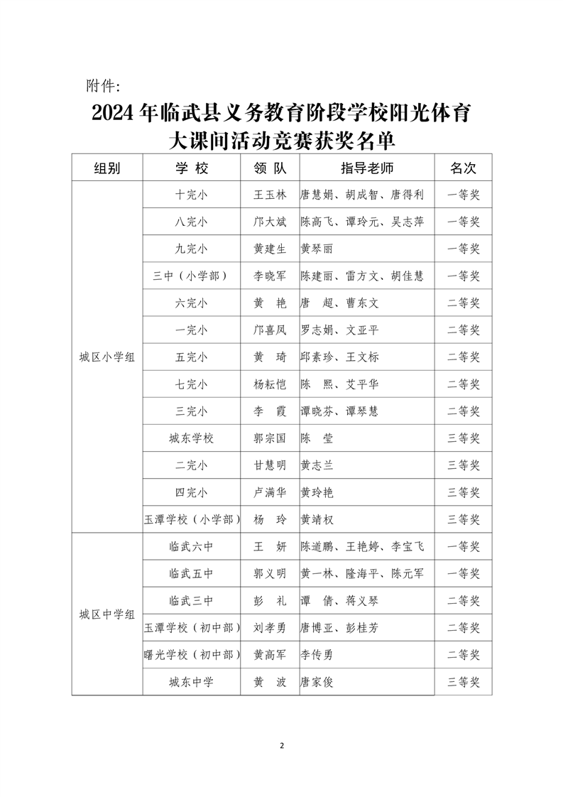 附件:2024年临武县义务教育阶段学校阳光体育大课间活动竞赛获奖名单