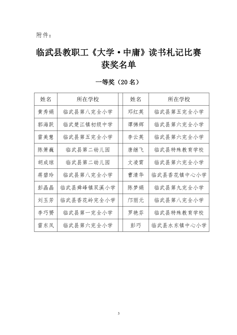 附件:临武县教职工《大学·中庸》读书札记比赛获奖