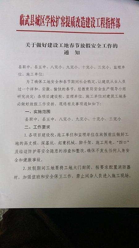 关于做好建设工地春节放假安全工作的通知(城区学校)