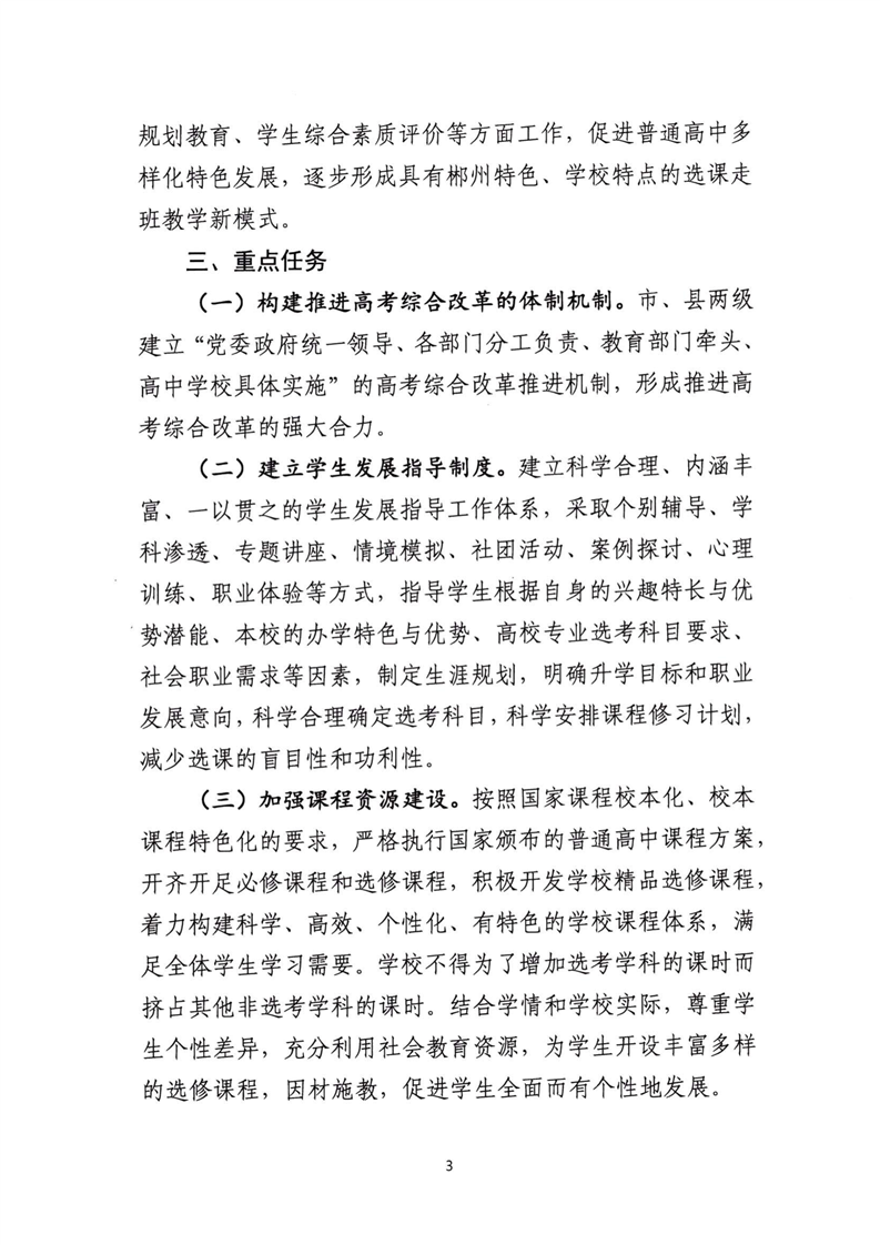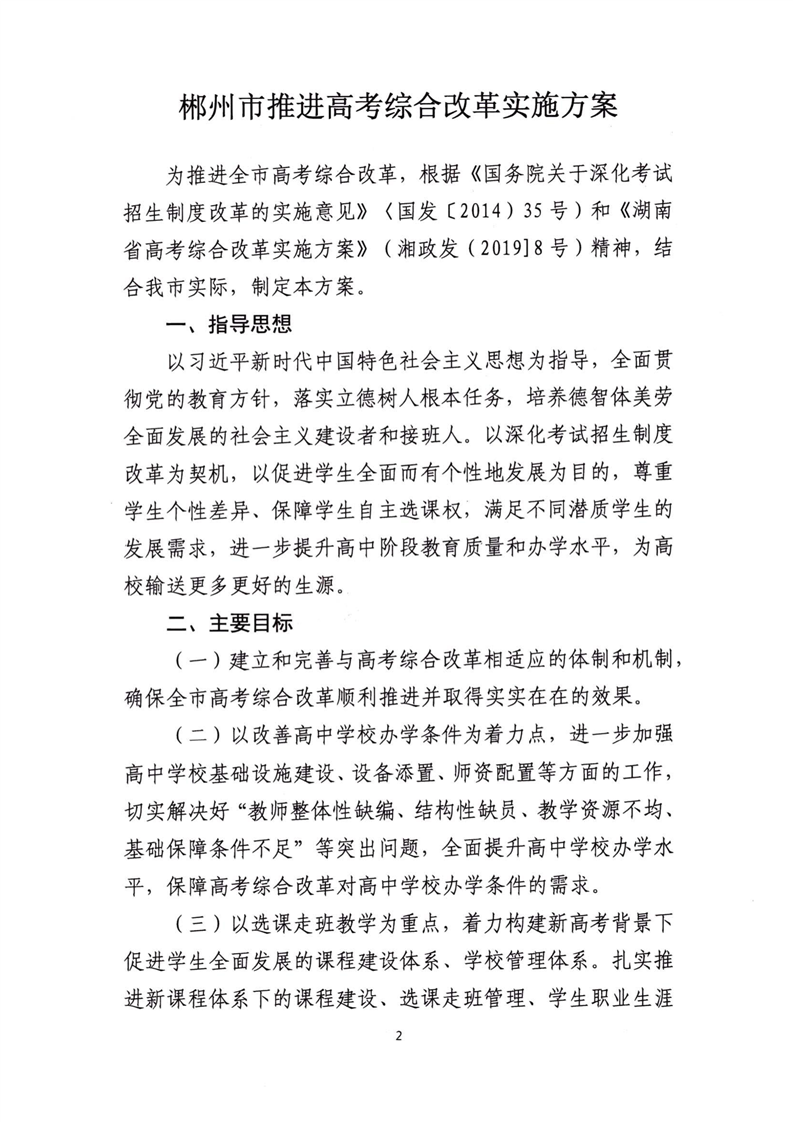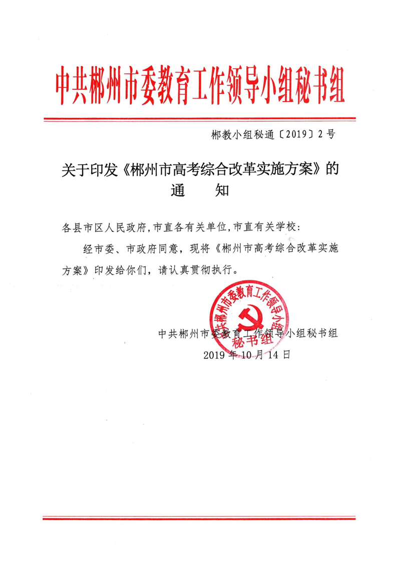 郴教小组秘通〔2019〕2号 关于印发《郴州市高考综合改革实施方案》的通知