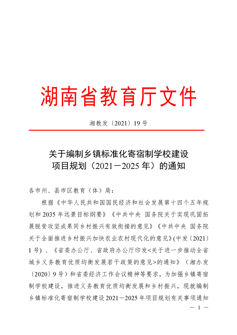 关于编制乡镇标准化寄宿制学校建设项目规划(2021-2025年)的通知