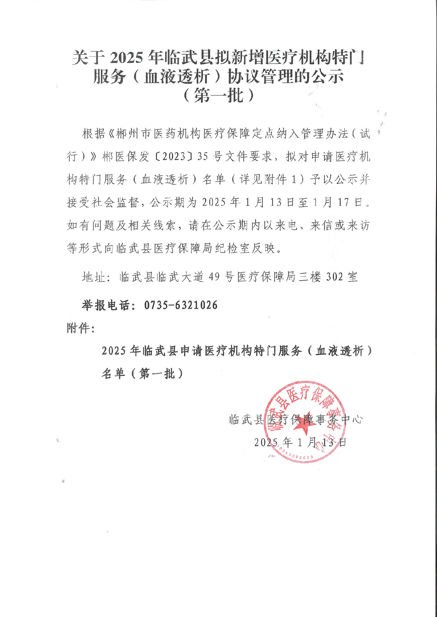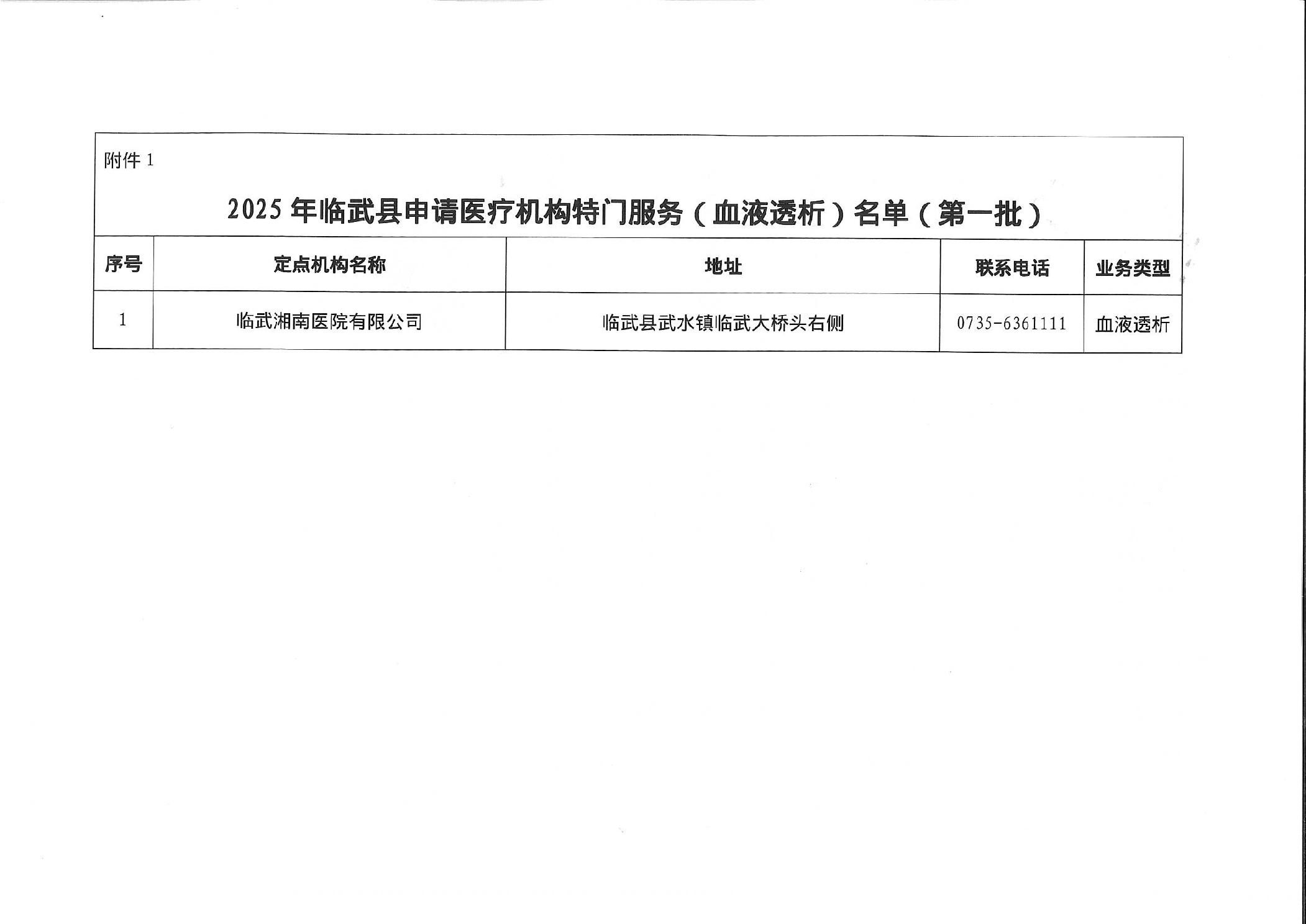 关于2025年临武县拟新增医疗机构特门服务(血液透析)协议管理的公示(第一批)