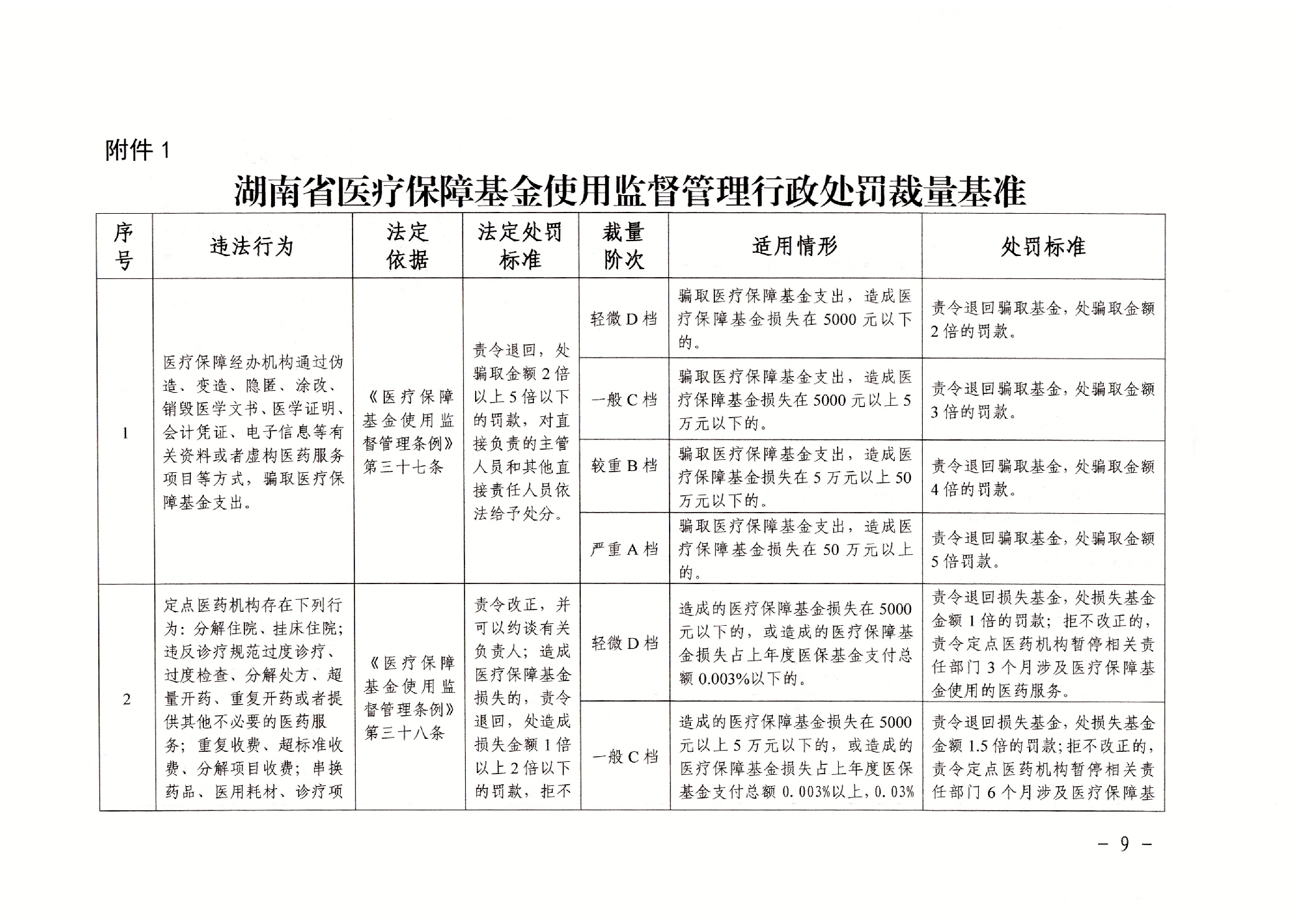关于印发《湖南省医疗保障基金使用监督管理行政处罚裁量基准适用办法》的通知(湘医保发〔2024〕14号)