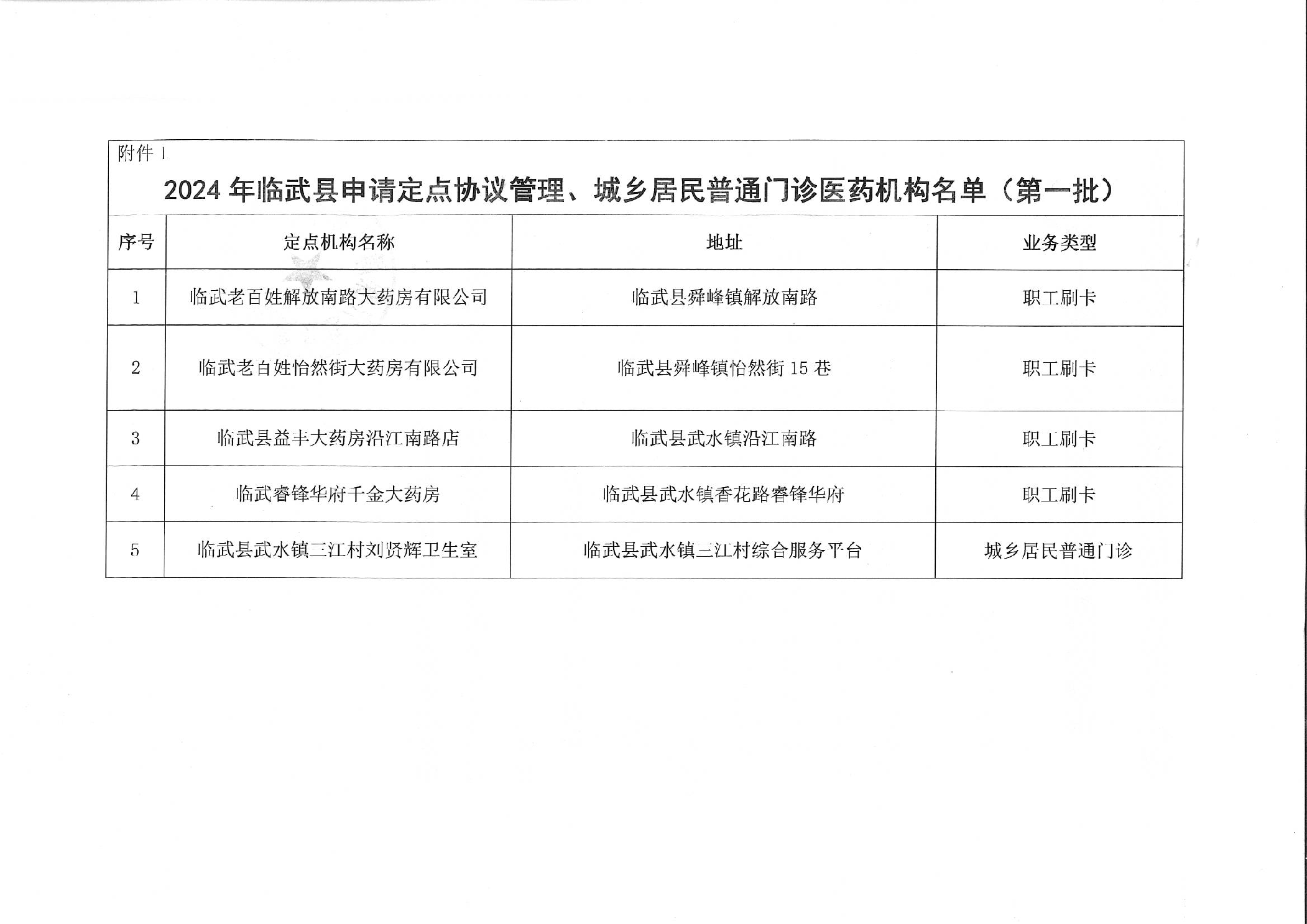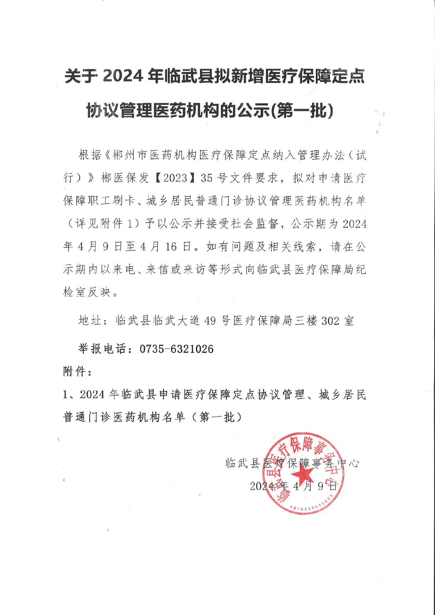 关于2024年临武县拟新增医疗保障定点协议管理医药机构的公示(第一批)