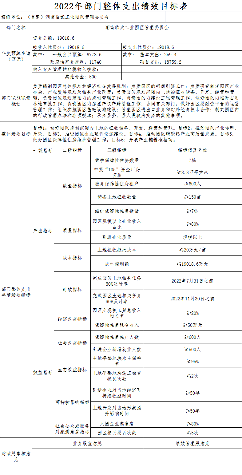 | 填报单位:(盖章)湖南临武工业园区管理委员会 单位:万元 |