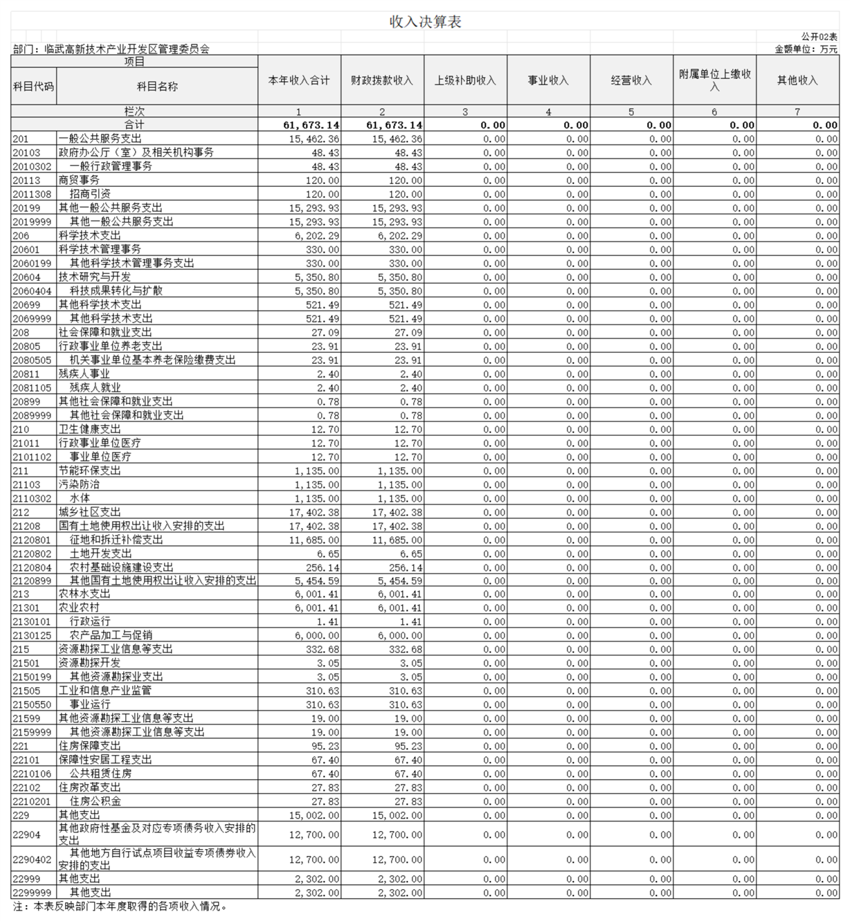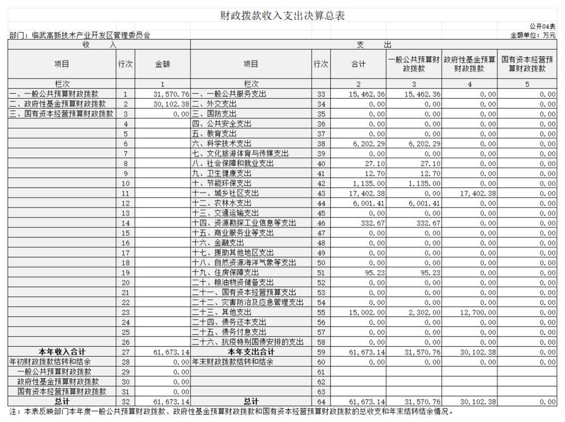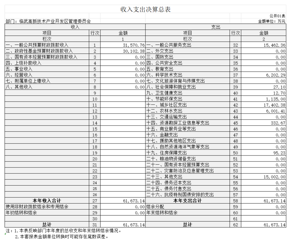 2023年度收、支总计61673.14万元。与上年相比,增加2599.51万元,增长4.4%,主要是因为2023年园区建设项目较上年有所增加,财政预算安排的项目建设收支相应增加。