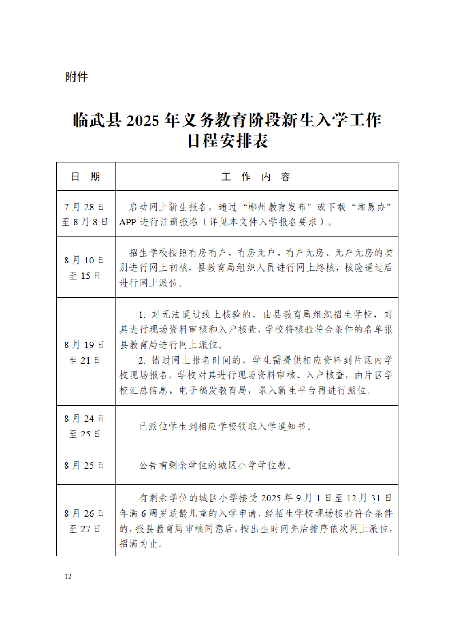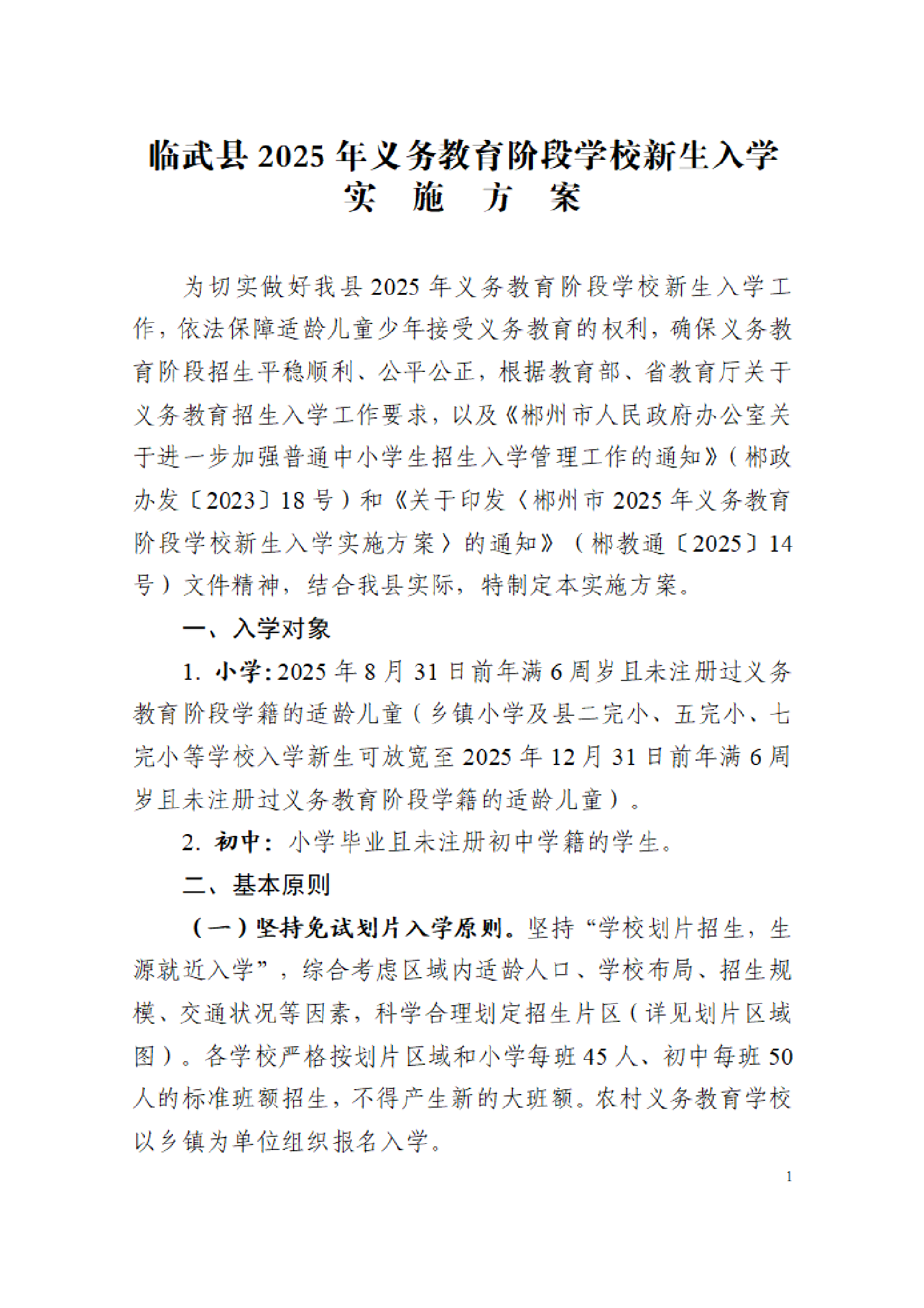 关于印发《临武县2025年义务教育阶段学校新生入学实施方案》的通知
