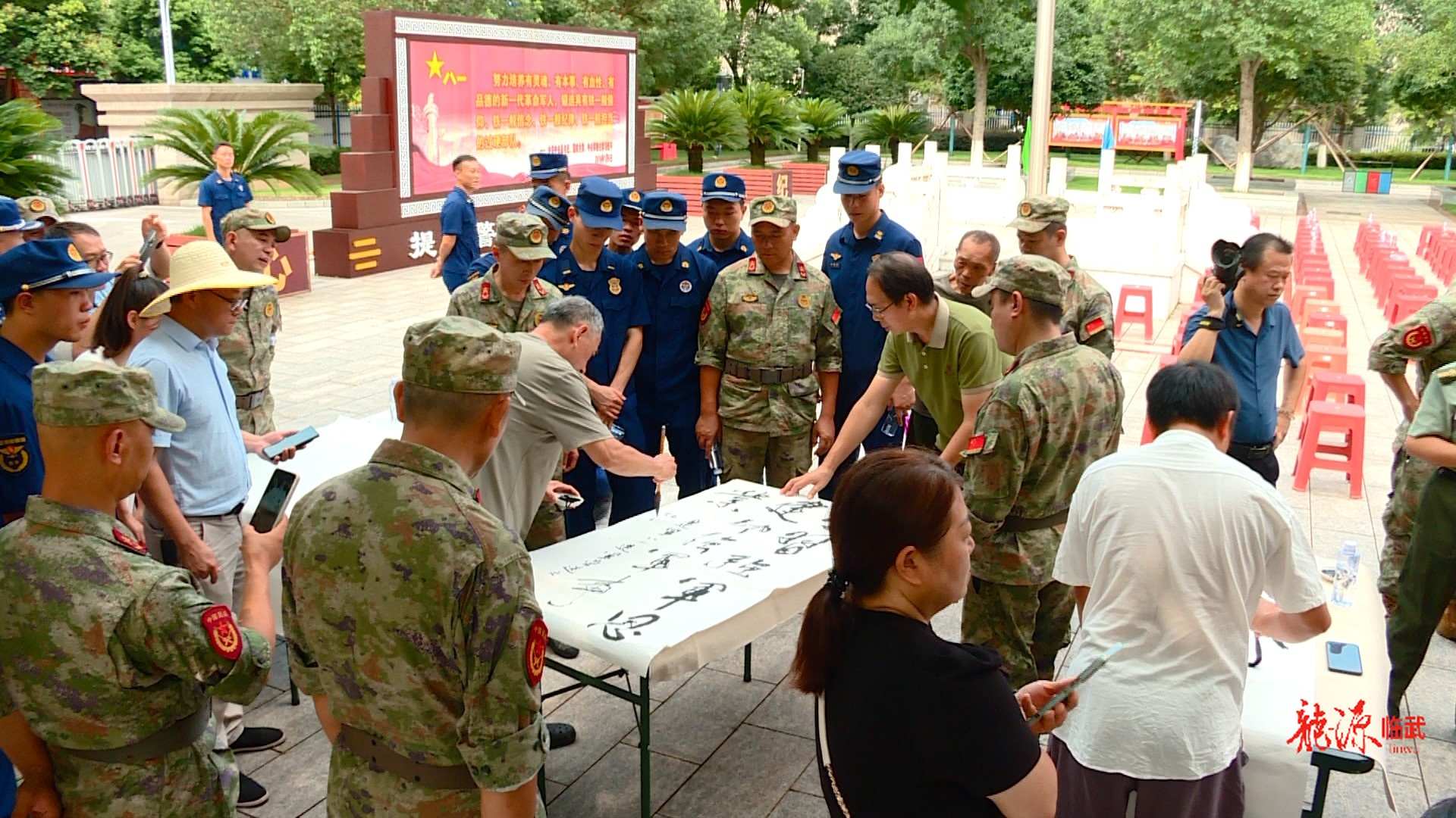 县文联的文艺工作者现场挥毫泼墨,为官兵们创作了多幅书法作品。演出结束后,与会学生代表和市民还参观了强军兴武馆,通过珍贵的历史图片和实物展陈,深入了解我县悠久的红色文化历史和双拥共建传统。