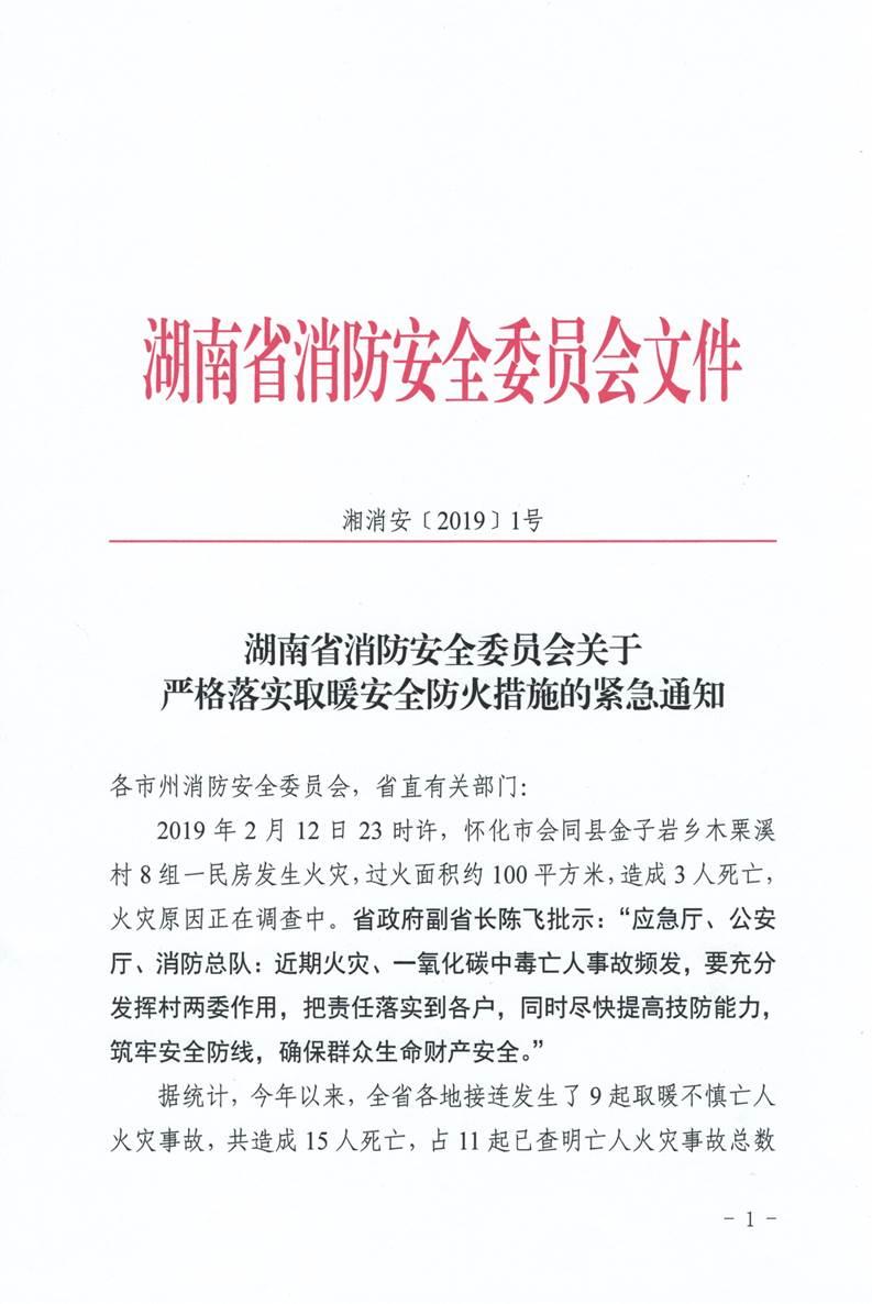 附件:湖南省消防安全委员会《关于严格落实取暖安全防火措施的紧急通知》