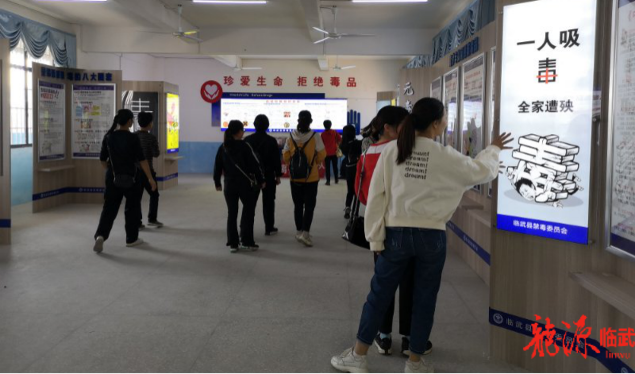 在南强中学禁毒教育基地,禁毒志愿者带领大家参观了禁毒教育基地展厅,为大家详细介绍了毒品的类型、外形特征、毒发症状、染毒途径、毒品危害性以及防毒意识和方法等相关知识。