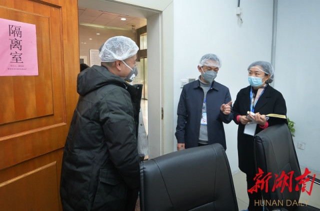 (1月25日上午,省委书记杜家毫在中南大学湘雅二医院督导检查疫情防控工作。湖南日报·新湖南客户端记者 罗新国 摄)