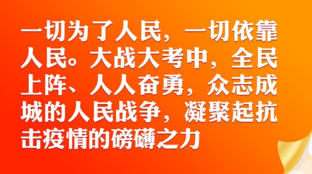 这场抗疫大战,全民上阵、人人奋勇。从机关到基层,从城市到农村,从企业到社区,从省内到海外,“地无分南北,人无分老幼”,无数人日夜坚守、忘我付出,“将无畏、民齐心”,凝聚起抗击疫情的磅礴之力。