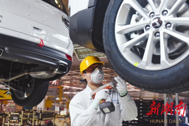 (2月24日,长沙经开区广汽菲克长沙工厂,工人在自动化生产线上忙碌。湖南日报·新湖南客户端记者 徐行 通讯员 张梅兰 摄影报道)