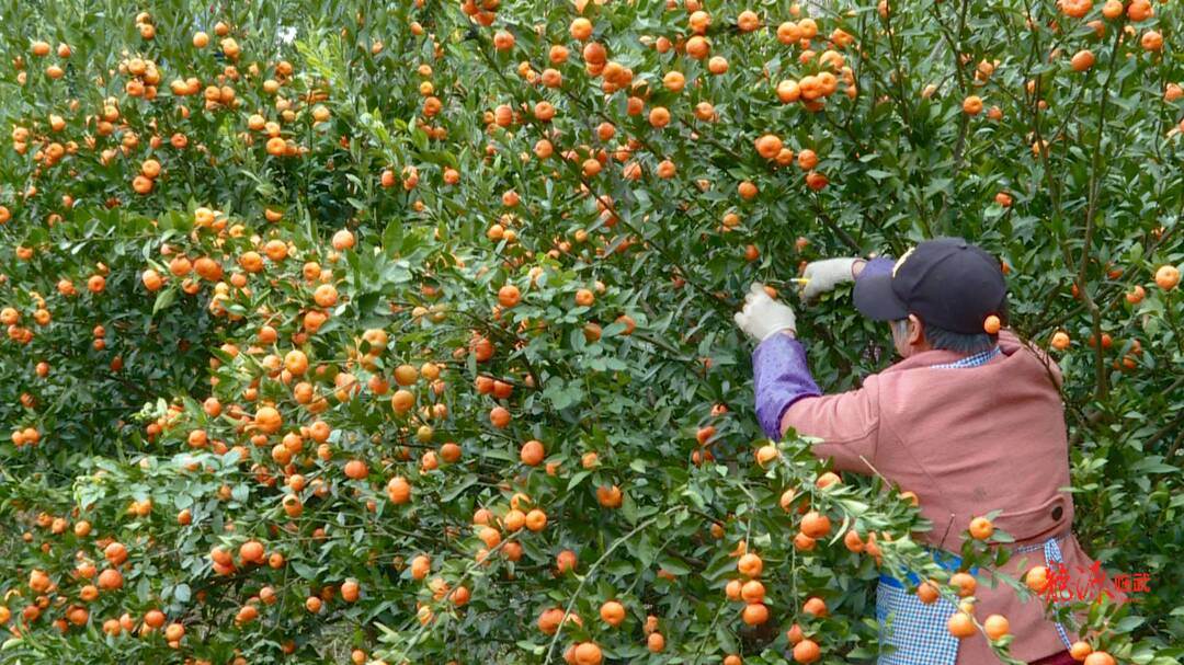 走进橘子园,果香扑鼻,放眼望去,一片绿海间,金灿灿的果实点缀枝头,让人垂涎欲滴。农户们正拿着箩筐、塑料桶、剪刀忙着采摘柑橘,采摘好的柑橘经过挑选后将运往北京、上海、黑龙江等地,目前已经有200吨的订单了。