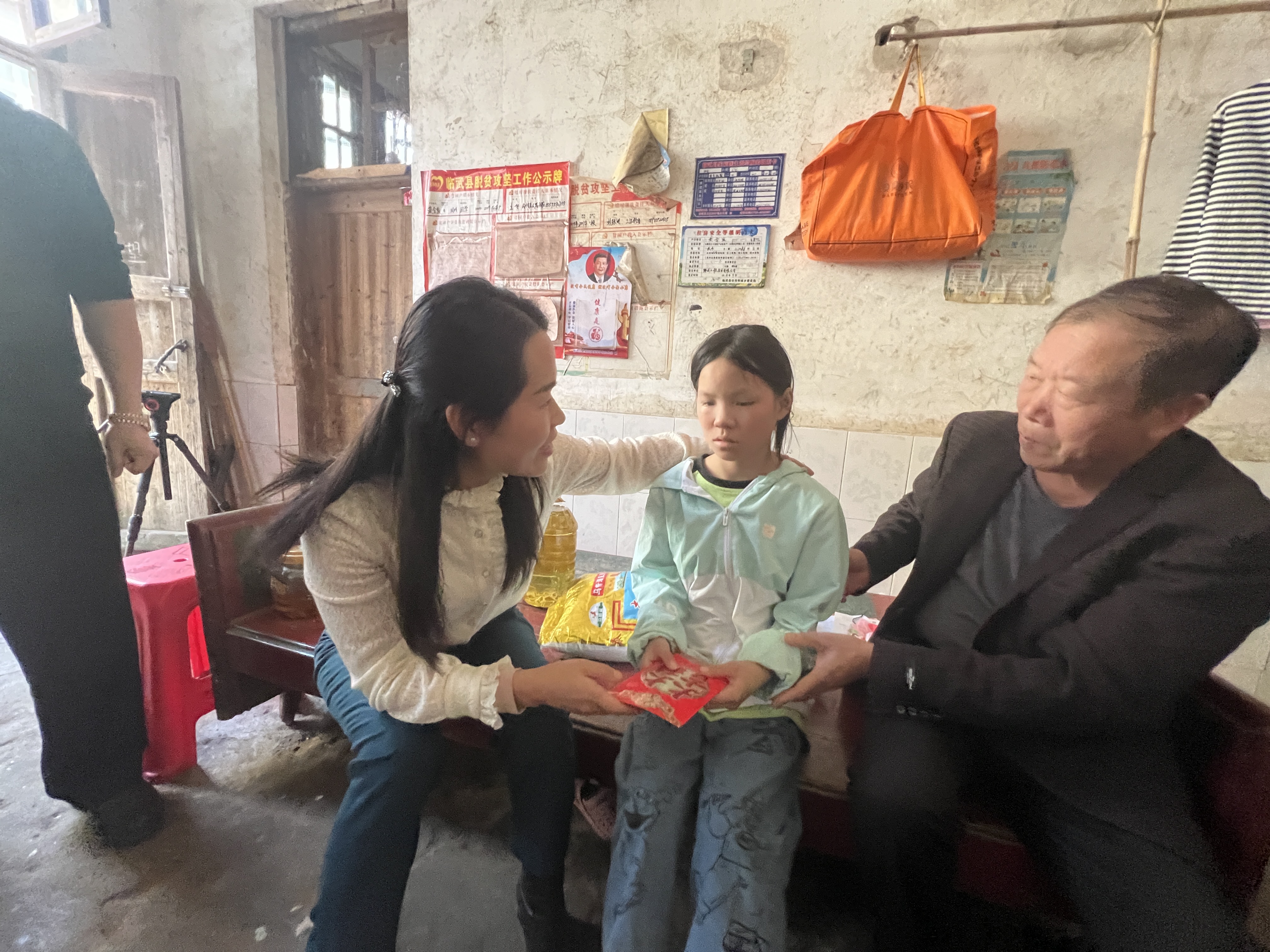 11月21日下午,县慈善总会在县政府的带领下,对武水镇三江村困境儿童黄三妹进行探访慰问,县慈善总会会长石传文送上一万元慰问金和米、油等生活用品。
