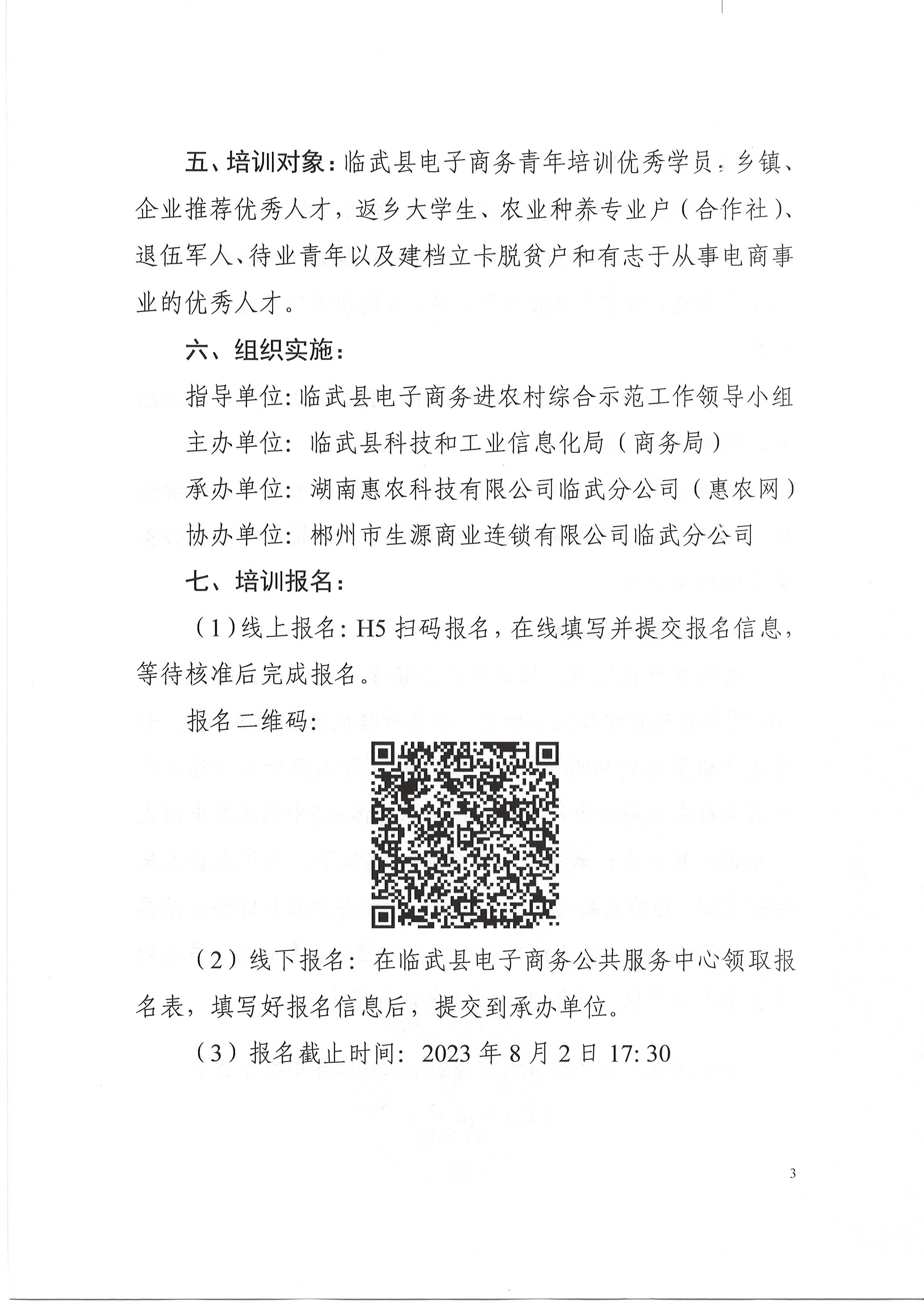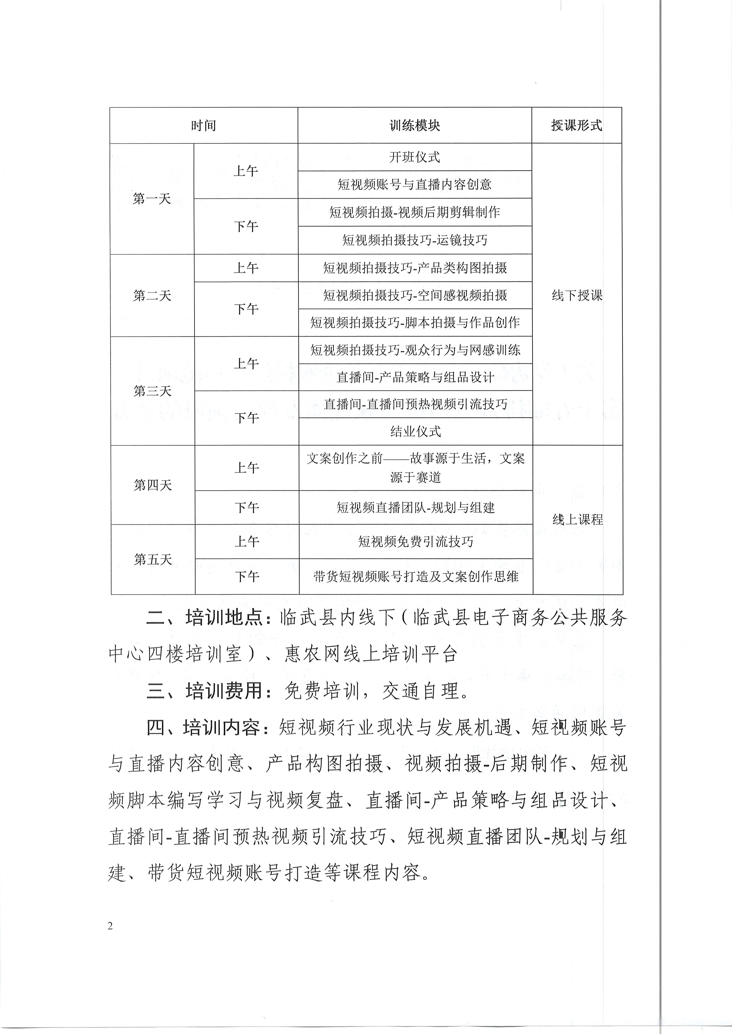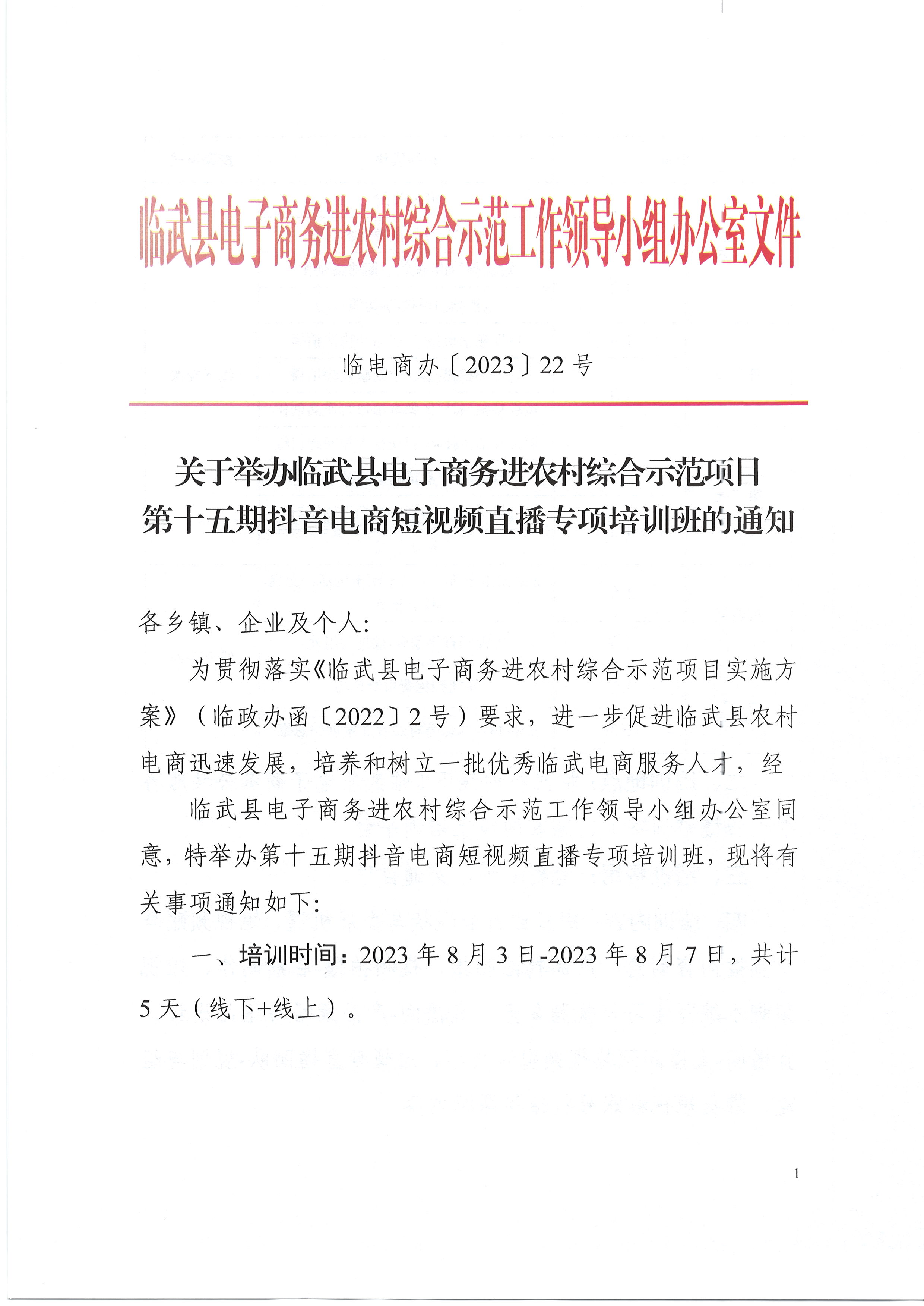关于举办临武县电子商务进农村综合示范项目第十五期抖音电商短视频直播专项培训班的通知