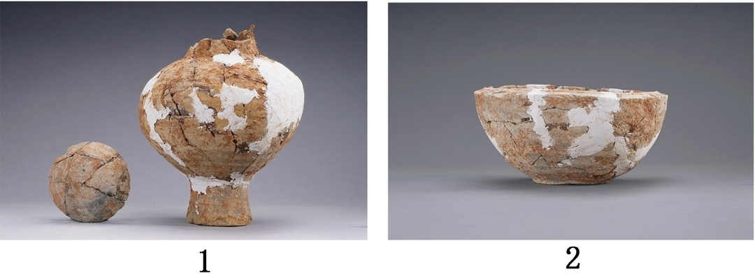 1.壶(公公坪M3:1) 2.盒(公公坪M3:6)