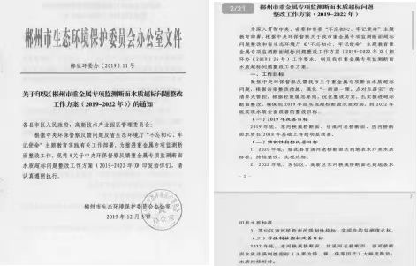 《郴州市重金属专项监测断面水质超标问题整改工作方案(2019-2022年)》