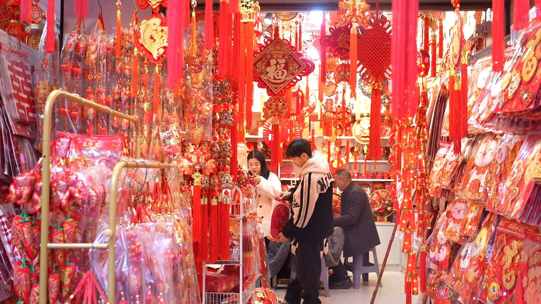 在城关市场的春联批发店内,王双喜已经经营店铺近40年。每年,他的店铺都能销售上万副春联。从顾客的脸上,他能直观感受到改革开放带来的变迁与人民生活水平的提高。随着人们的生活水平越来越好,所以对联尺寸也越来越大。