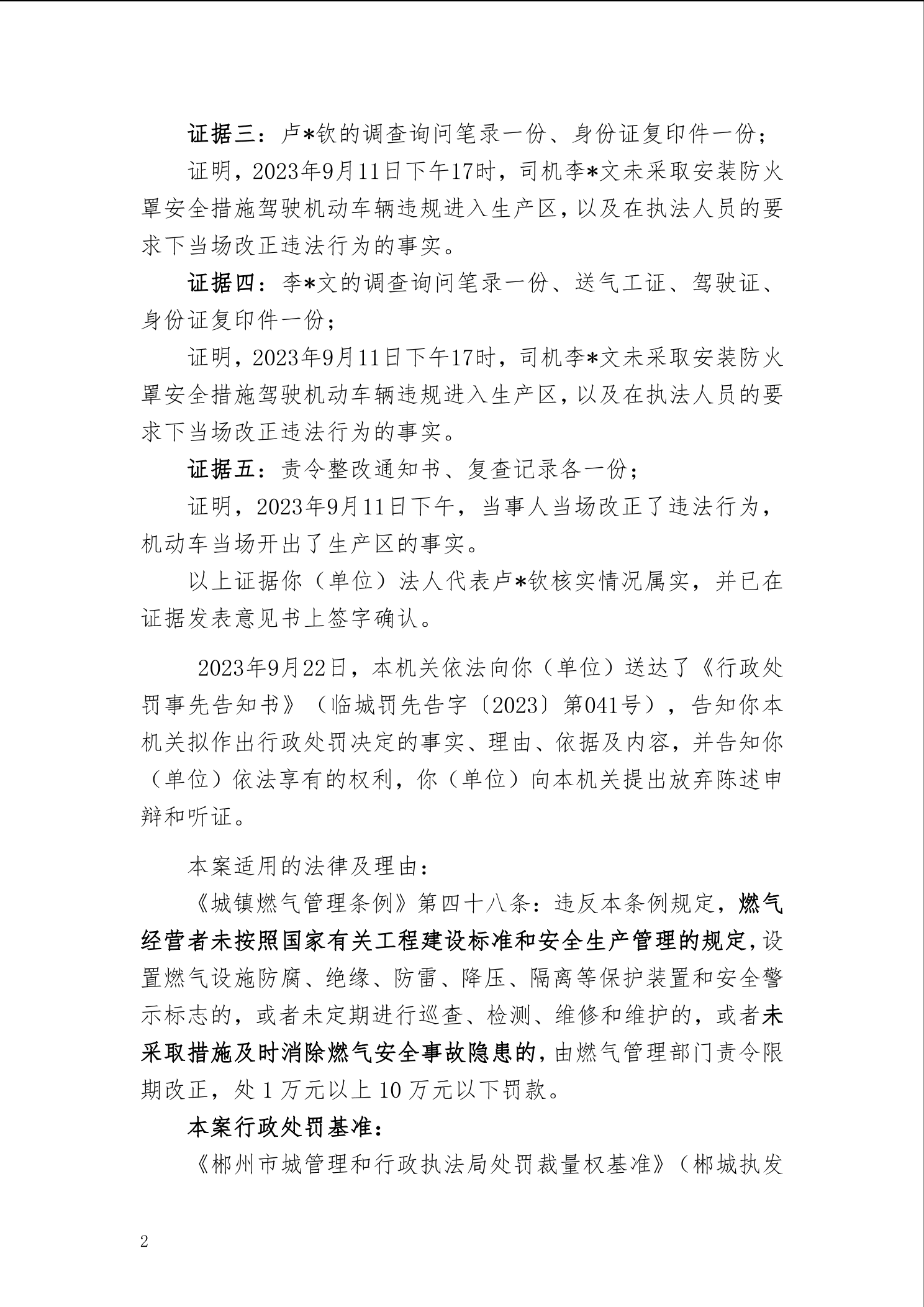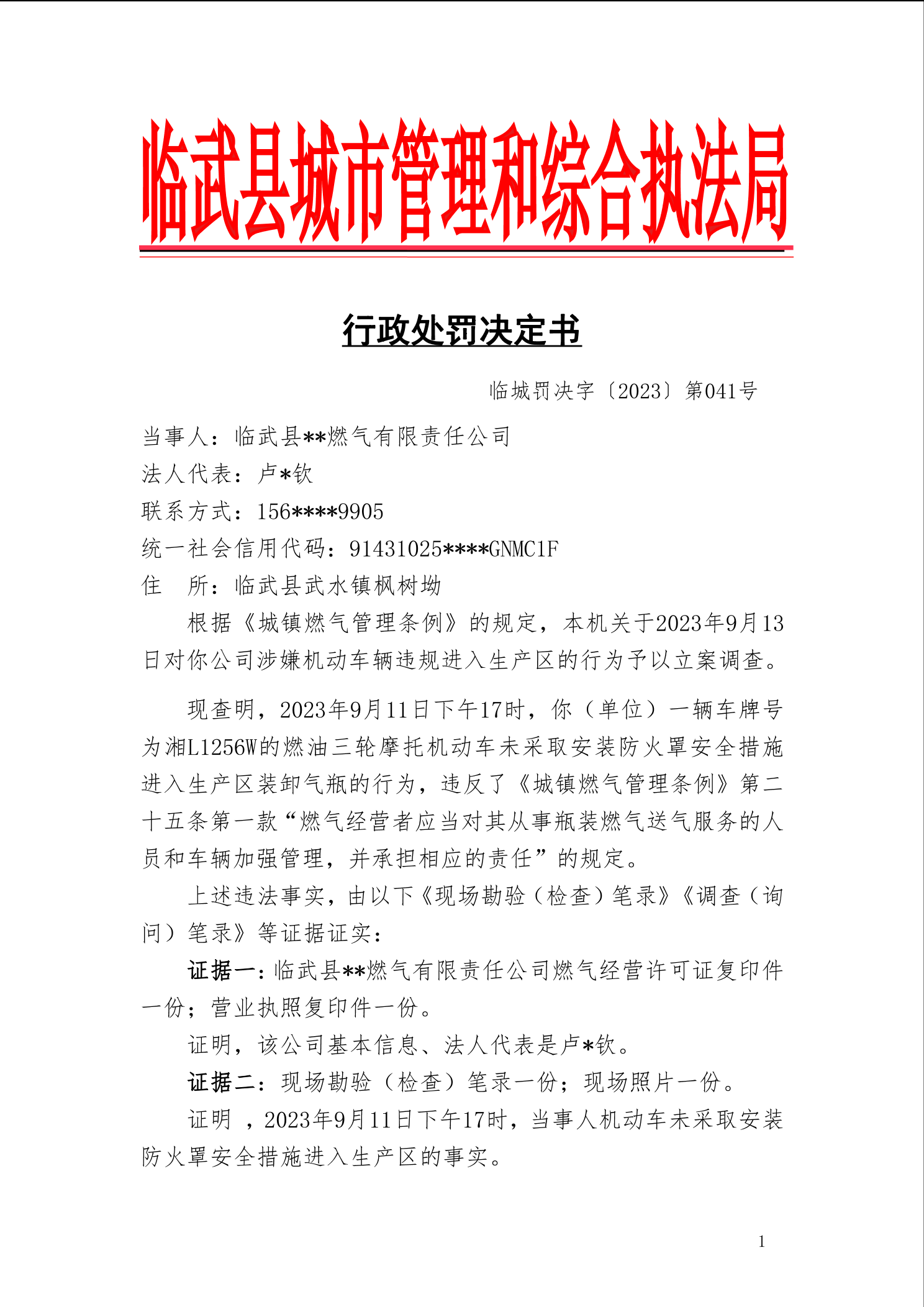 行政处罚决定书 临城罚决字〔2023〕第041号