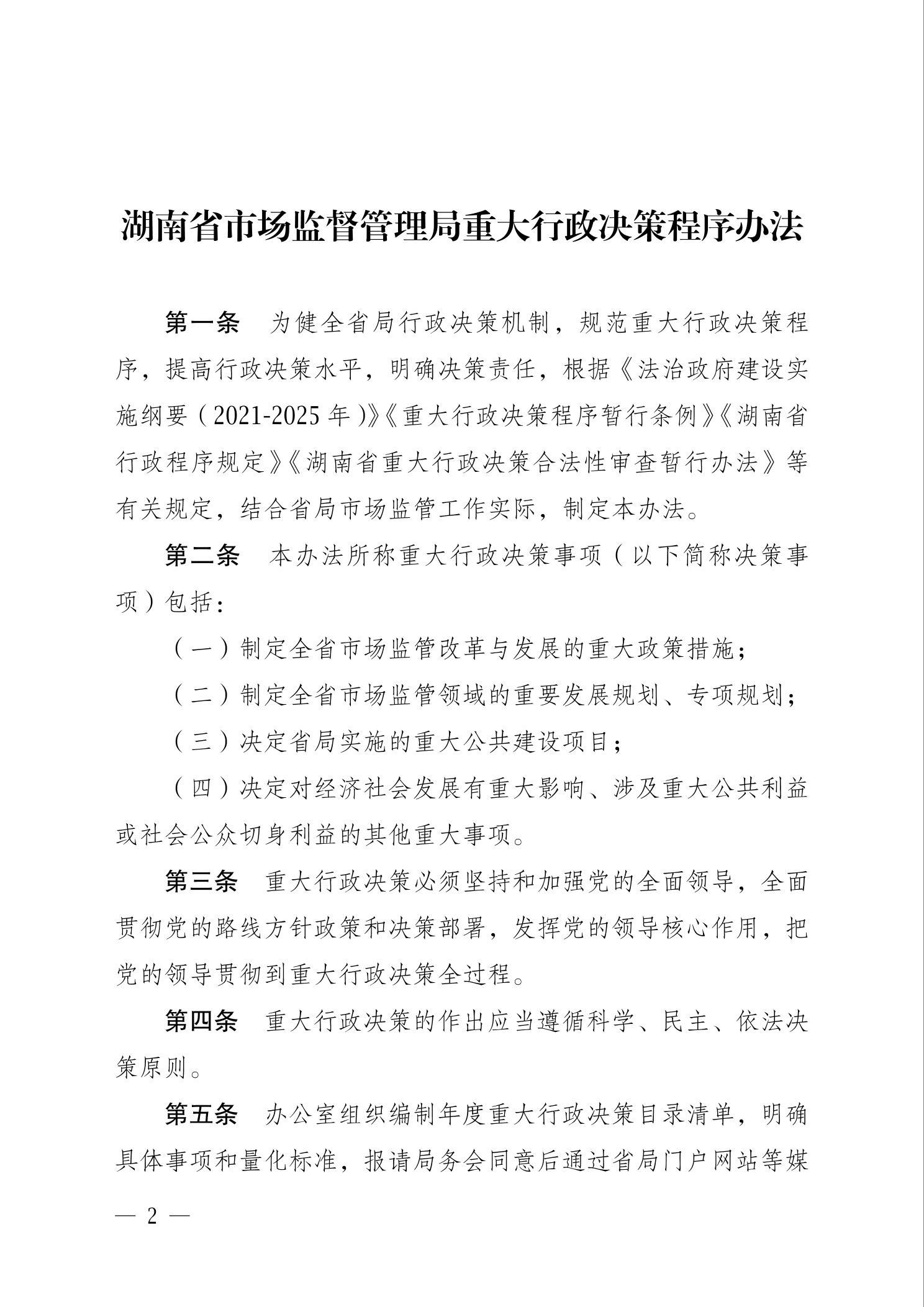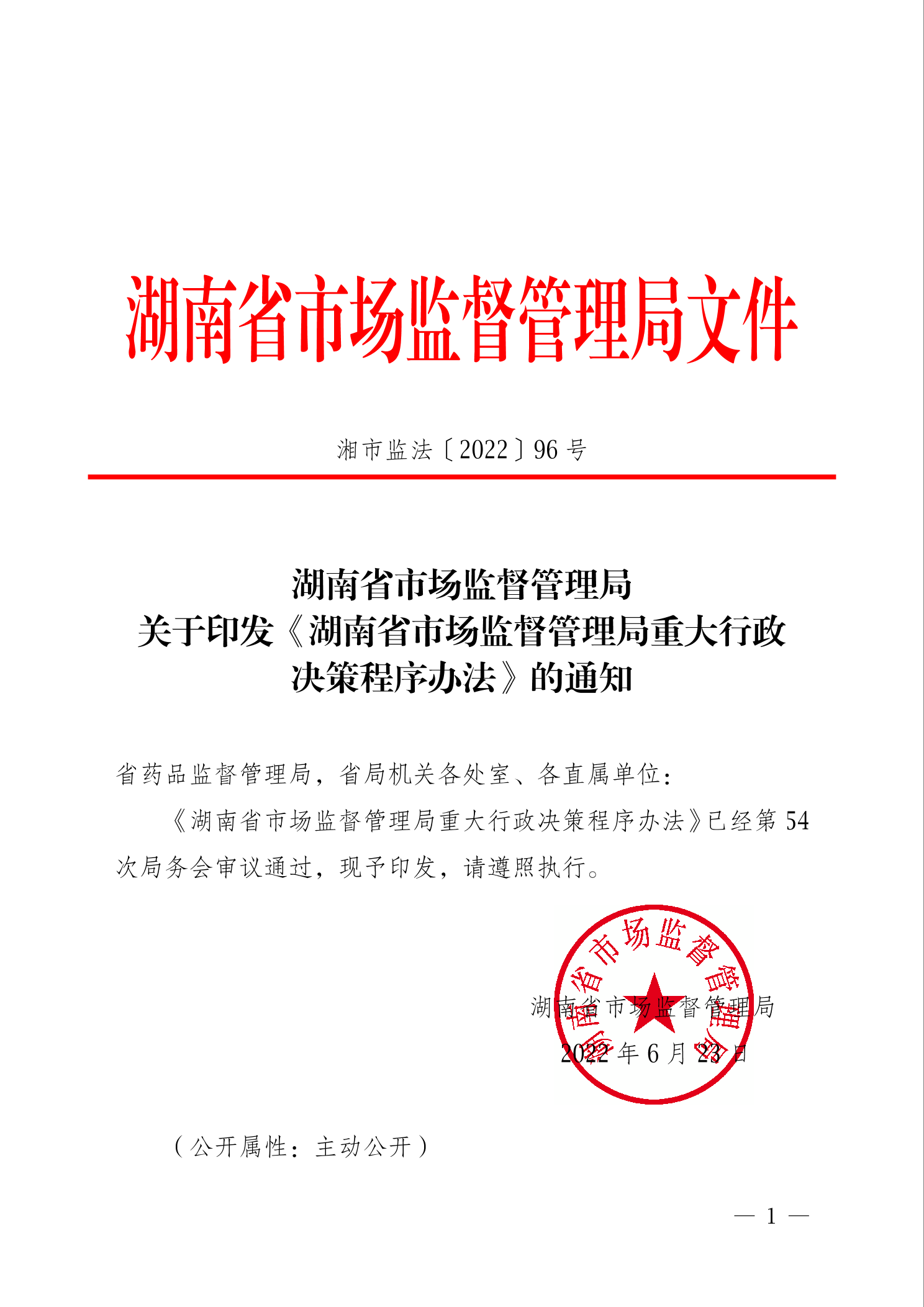 关于印发《湖南省市场监督管理局重大行政决策程序办法》的通知