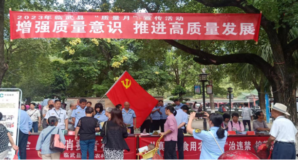 今年9月,是我国第46个“质量月”,为进一步普及质量知识,增强全民质量意识,提升各行业质量水平,营造高质量发展的浓厚社会氛围。9月25日,临武县质量强县建设协调推进领导小组办公室、临武县市场监管局联合县发改局、县科工局、县住建局、县烟草局等11个成员单位在河滨公园广场举办2023年“质量月”主题宣传活动。