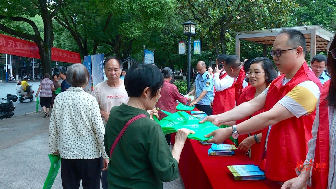 活动现场,工作人员摆放宣传展板、悬挂宣传标语、设置法律咨询台,并向市民发放宣传手册,宣传生态文明理念、环境保护法律法规和环保常识,引导公众积极、主动参与生态环保,共同建设绿色临武、美丽临武。