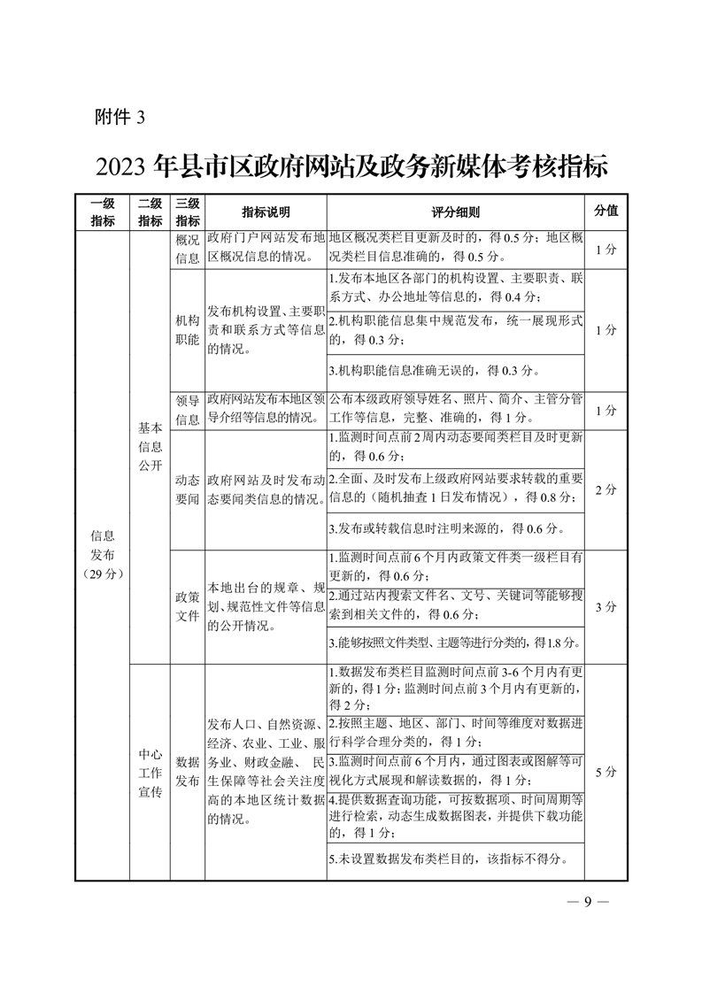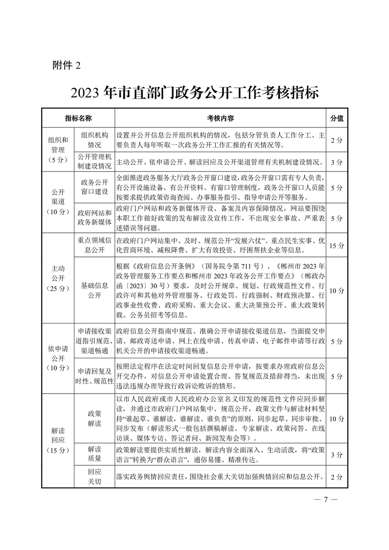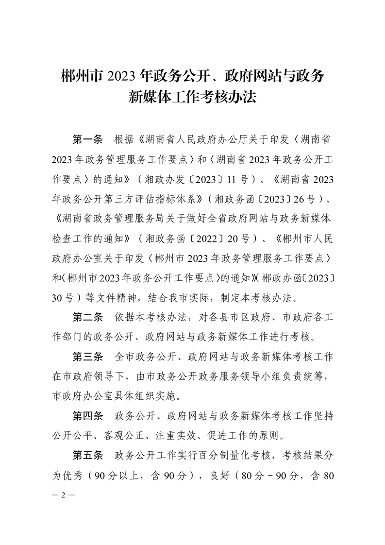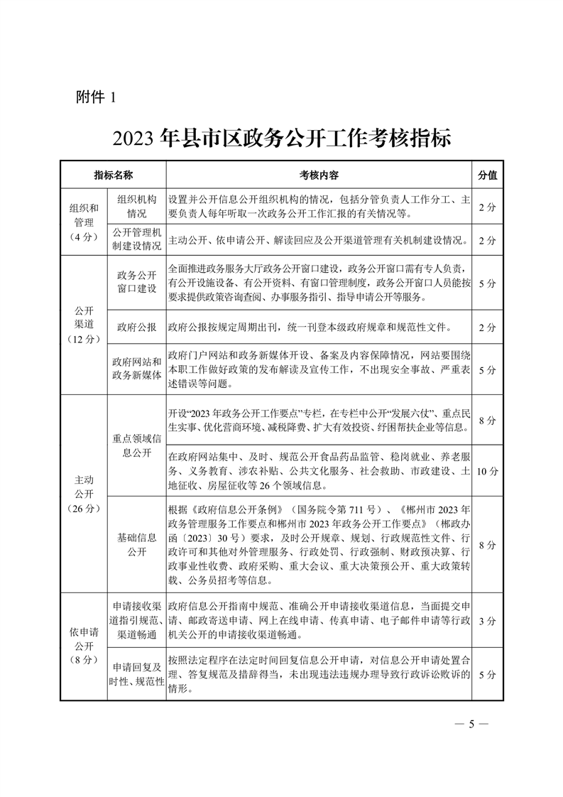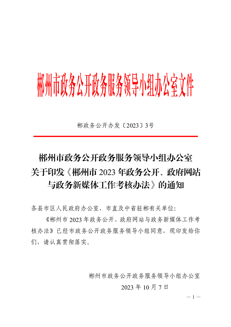 郴州市政务公开政务服务领导小组办公室 关于印发《郴州市 2023 年政务公开、政府网站与政务新媒体工作考核办法》的通知