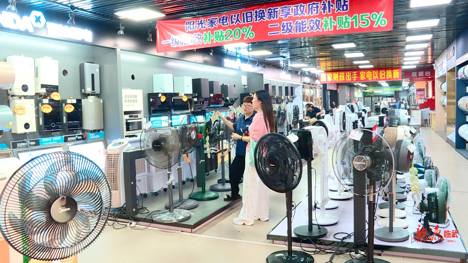 为抓住这波高温商机,各大家电卖场纷纷推出满减、送赠品等优惠活动,加上家电以旧换新“国补”政策,进一步刺激消费者的购买欲望,不少家庭一次性就购置数台空调和电风扇。
