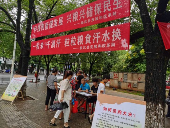 8月26日,临武县发展和改革局在河滨公园开展以 “科技创新促发展,兴粮储粮保民生”为主题的粮食和物资储备科技活动周宣传活动。