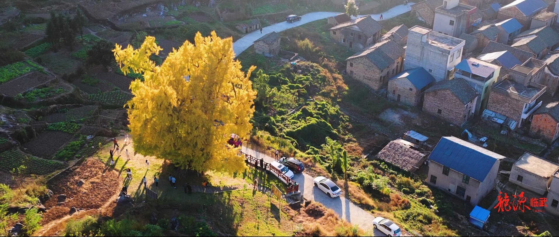 初冬已至,临武县万水乡上潢村500岁的古银杏盛装登场!满树鎏金,灿若云霞,这棵历经沧桑的巨树迎来了它一年中最绚烂的时刻,也让静谧的古村变得游人如织,热闹非凡。