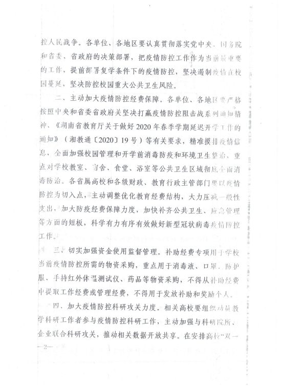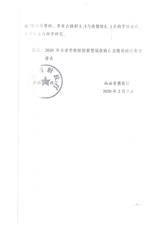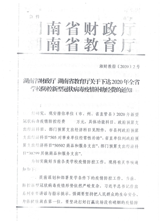 湘财教指【2020】2号 湖南省财政厅 湖南省教育厅关于下达2020年全省学校防控新型冠状病毒疫情补助经费的通知