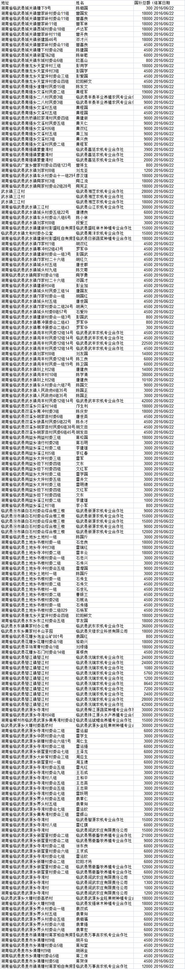 2016年农机购置补贴结算资金第一批花名册