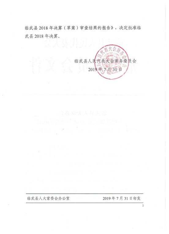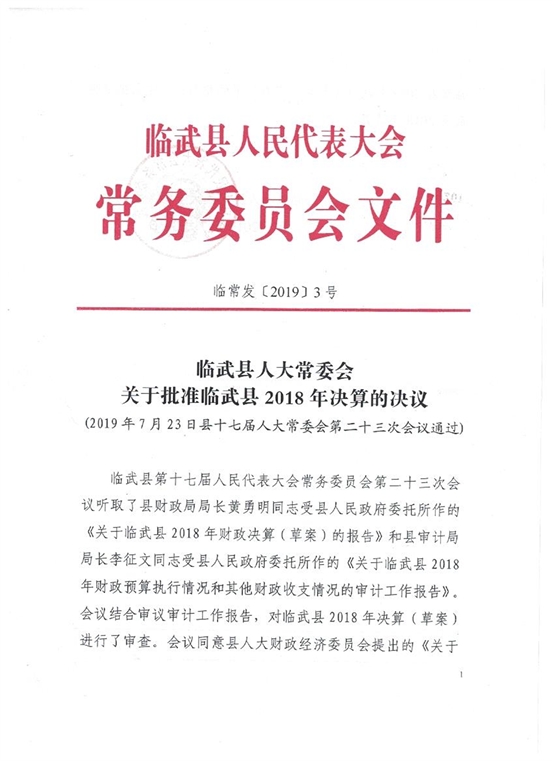 4.临武县人大常委会关于批准临武县2018年决算的决议(临常发〔2019〕3号)