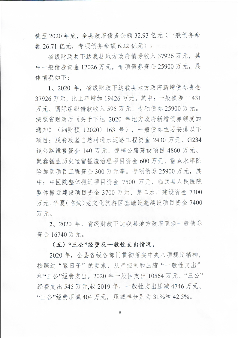 第三部分 2020年临武县地方政府债务信息公开表及情况说明