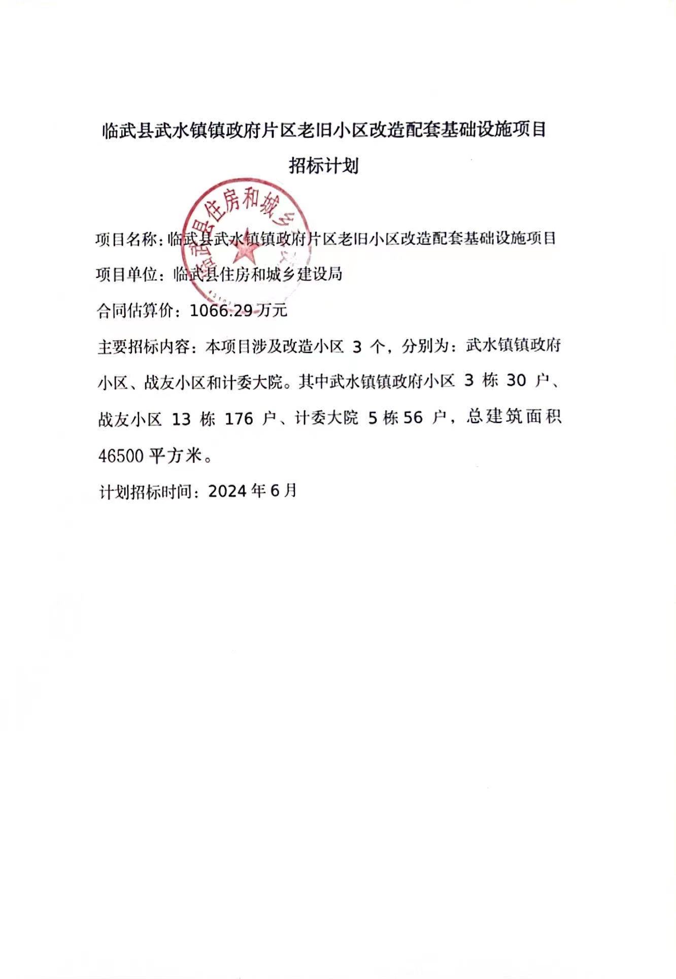 临武县武水镇镇政府片区老旧小区改造配套基础设施项目招标计划