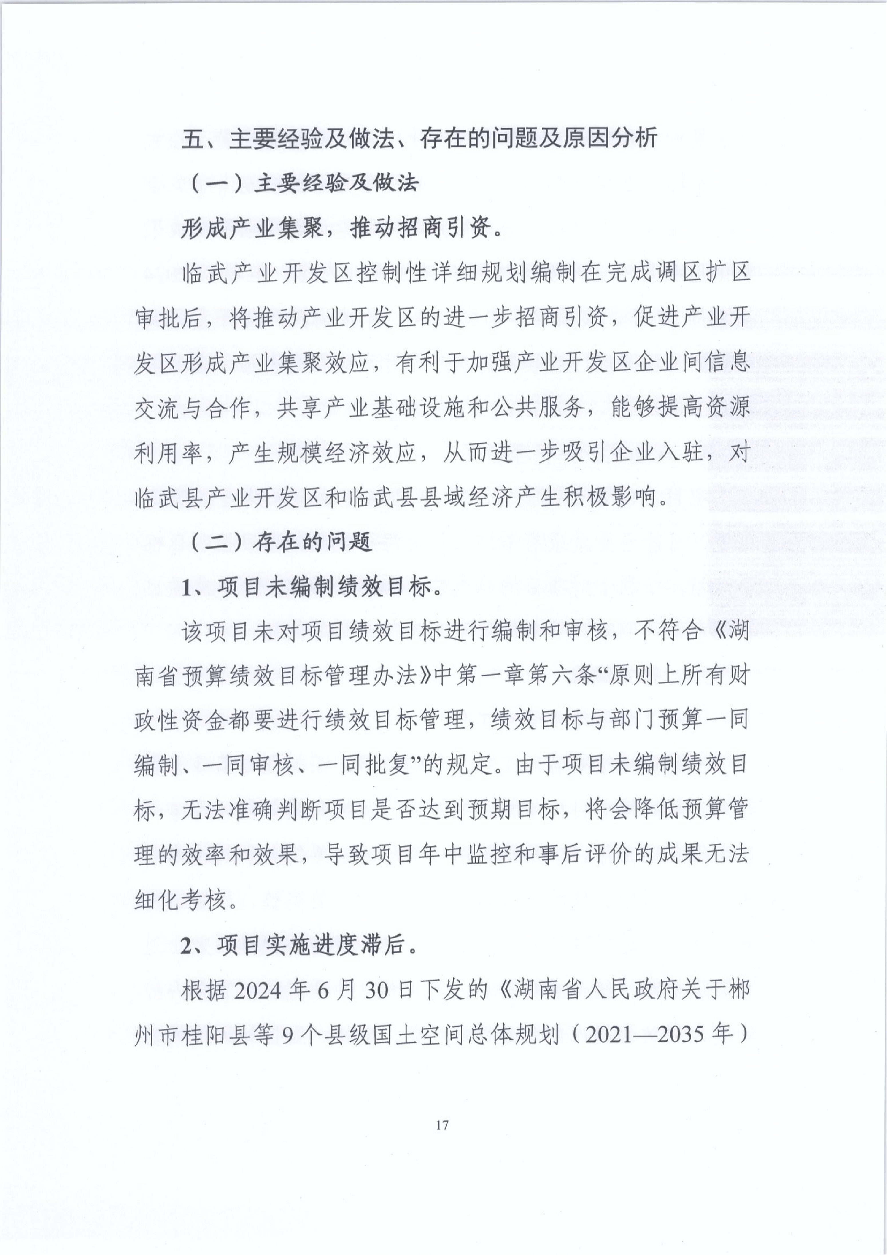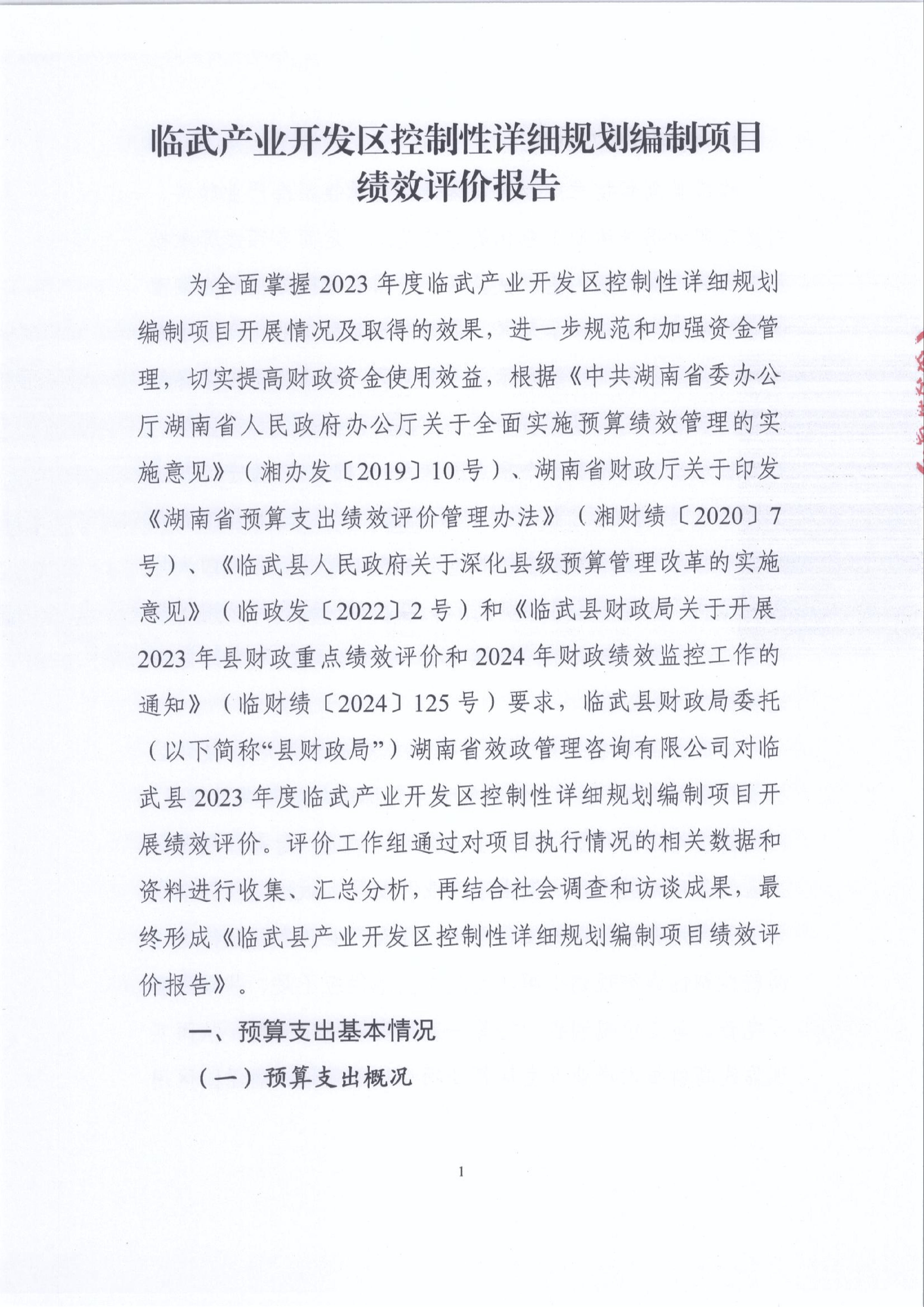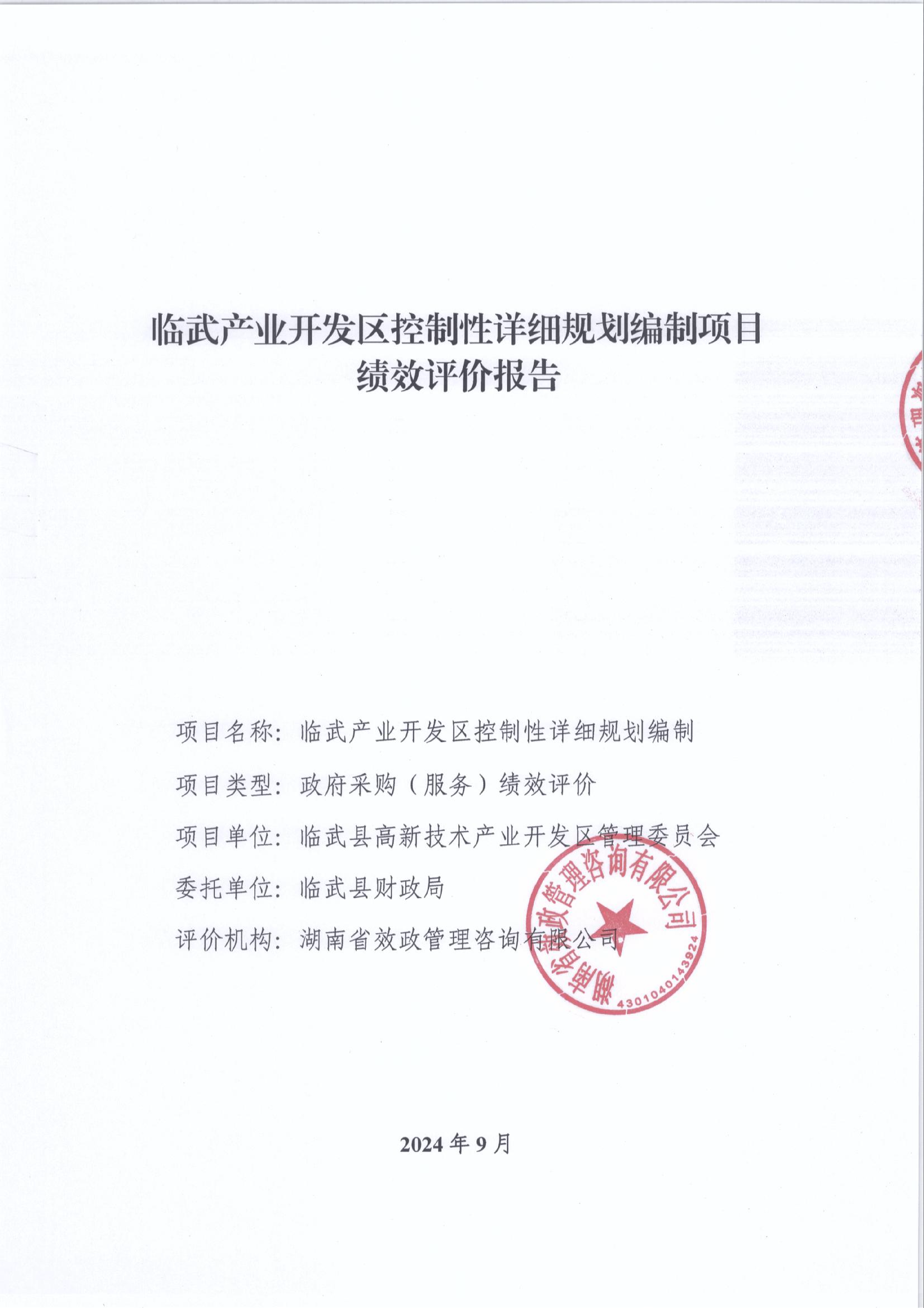 临武产业开发区控制性详细规划编制项目绩效评价报告