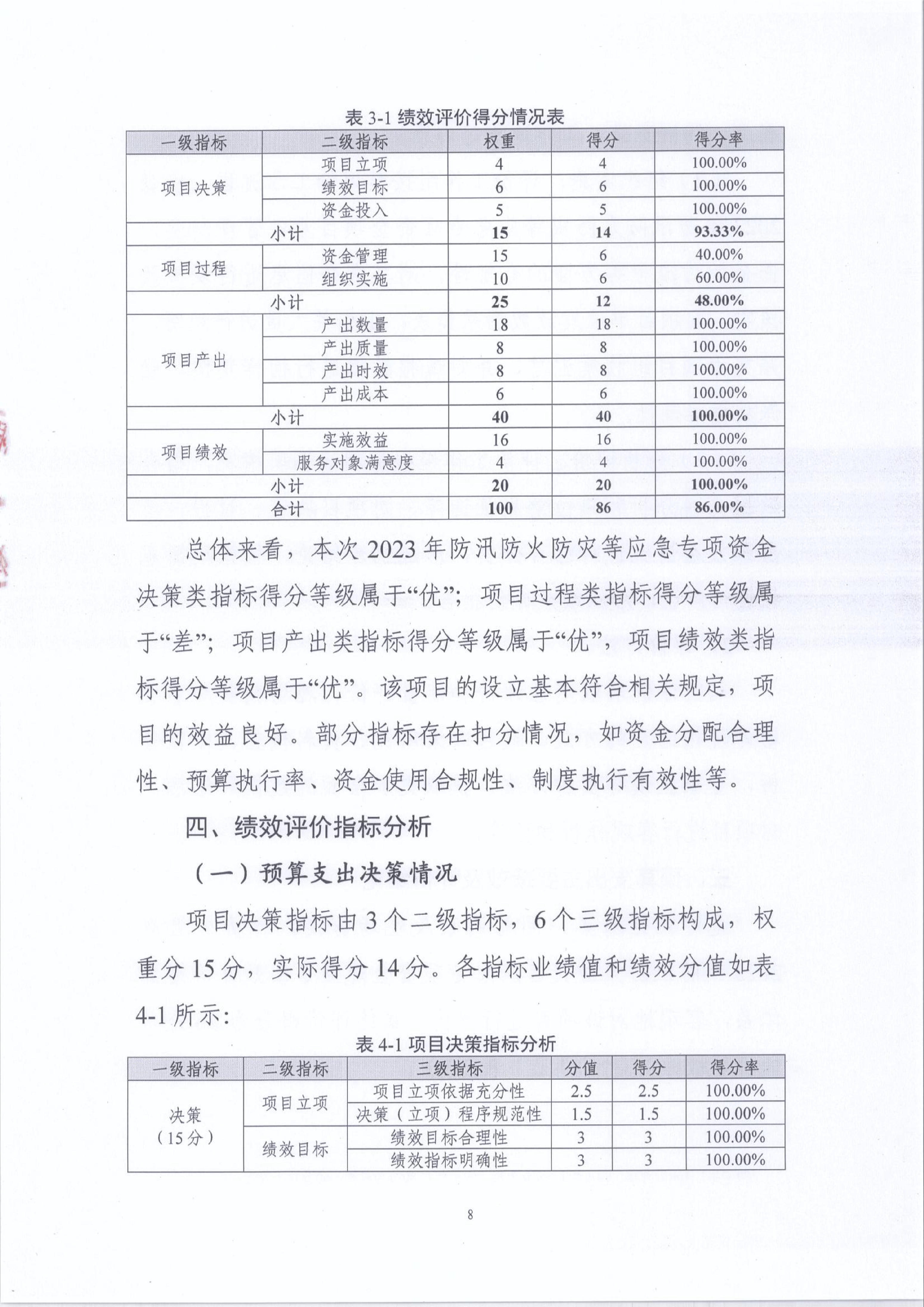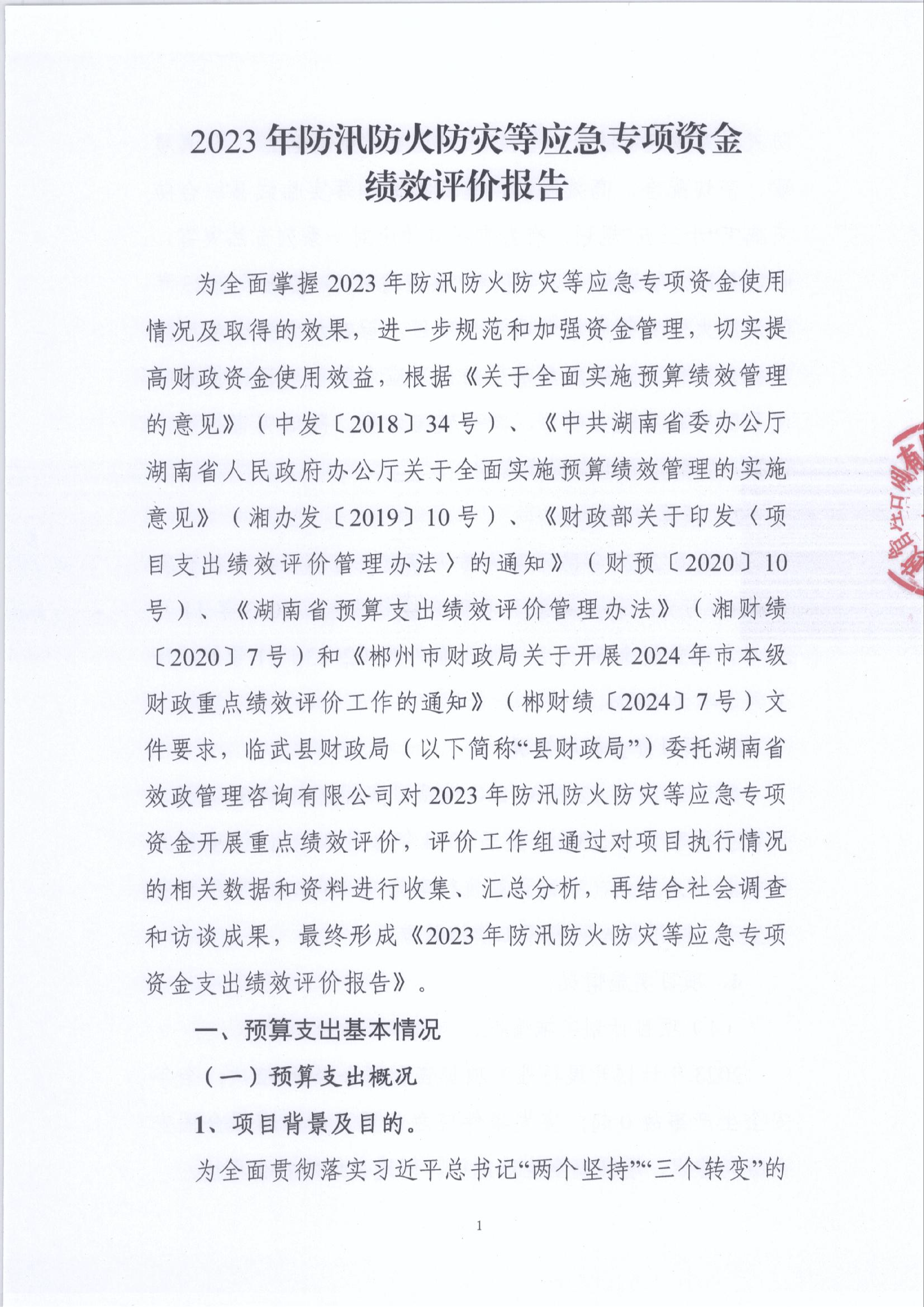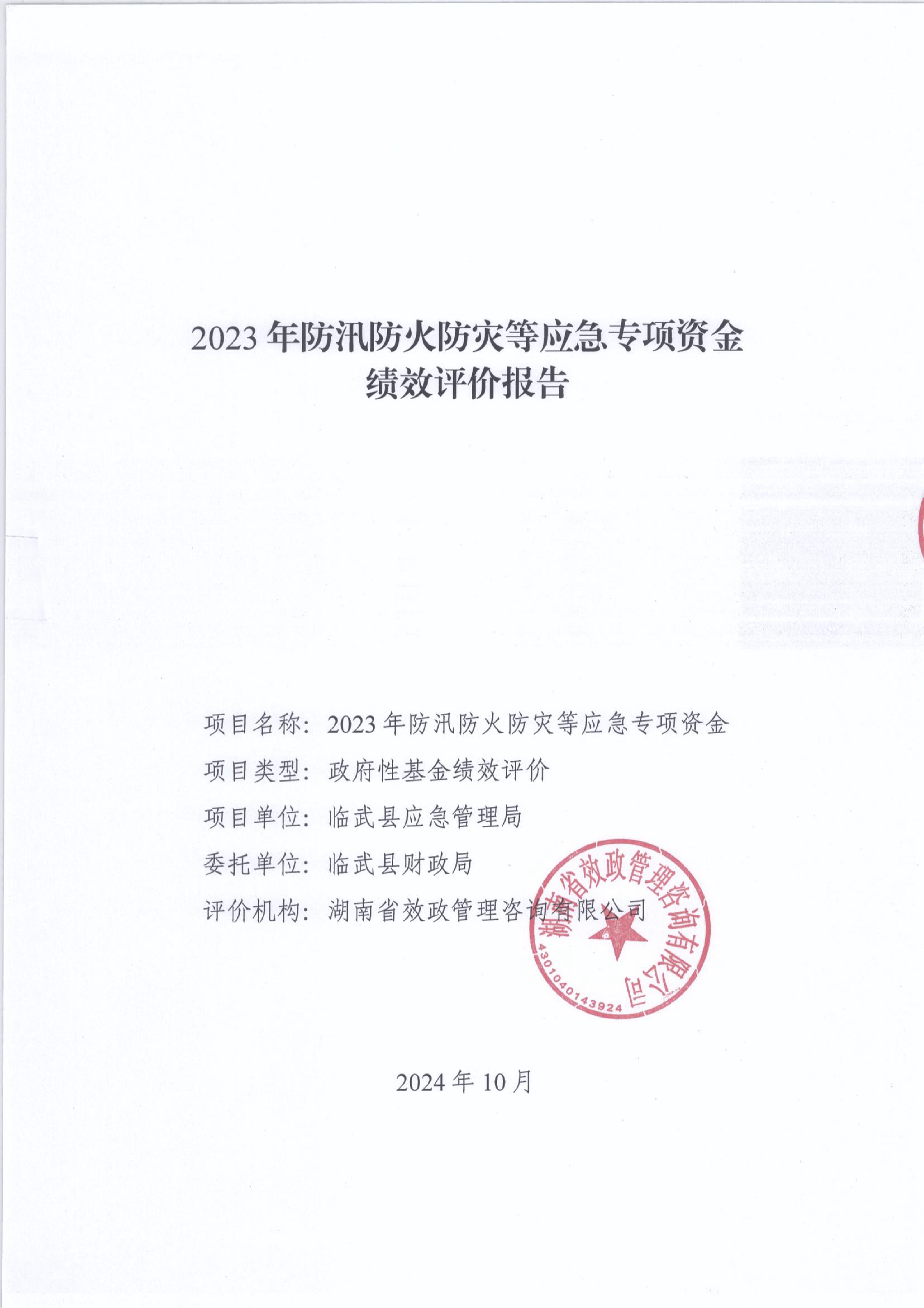 2023年防讯防火防灾等应急专项资金绩效评价报告