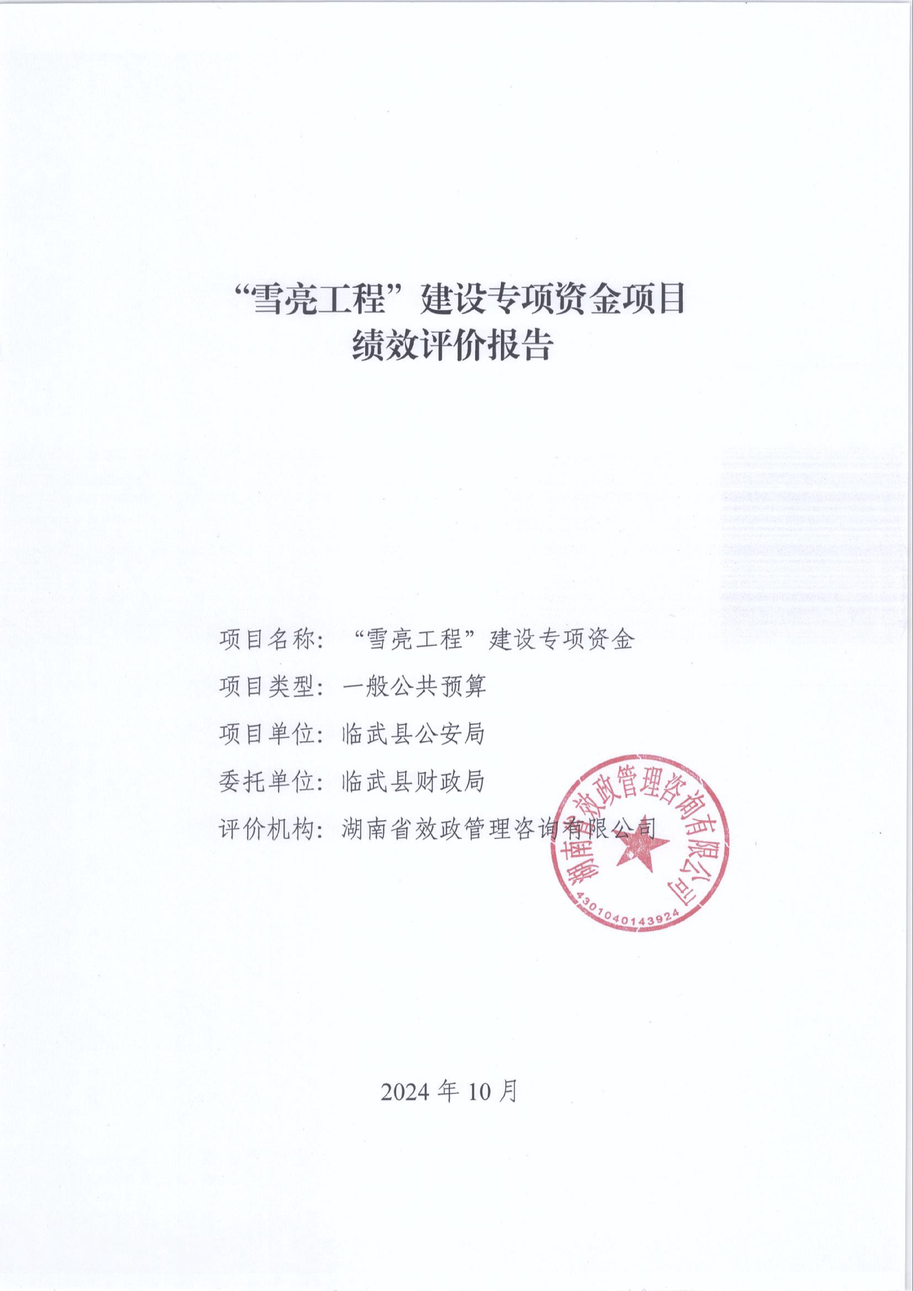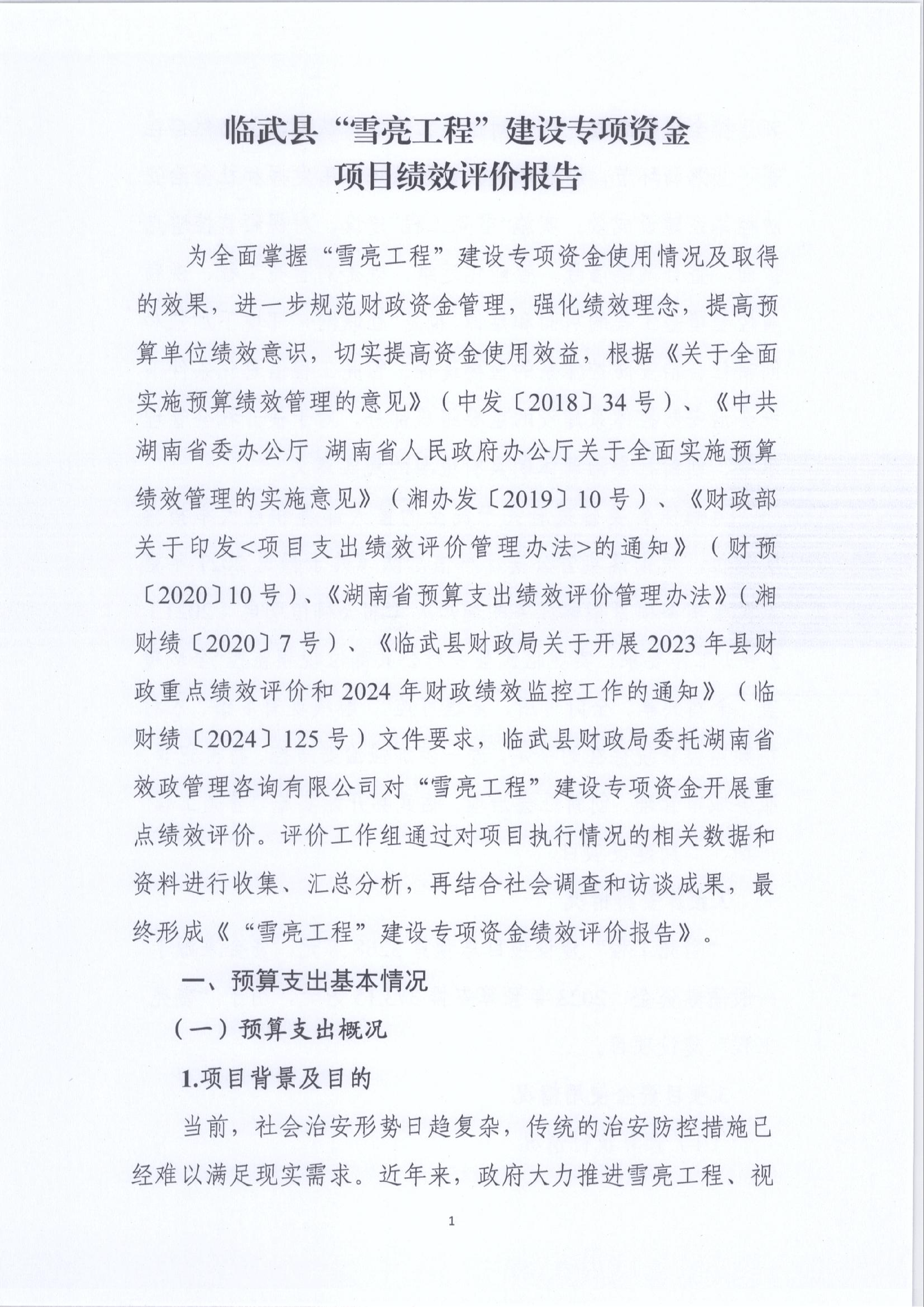 “雪亮工程”建设专项资金项目绩效评价报告