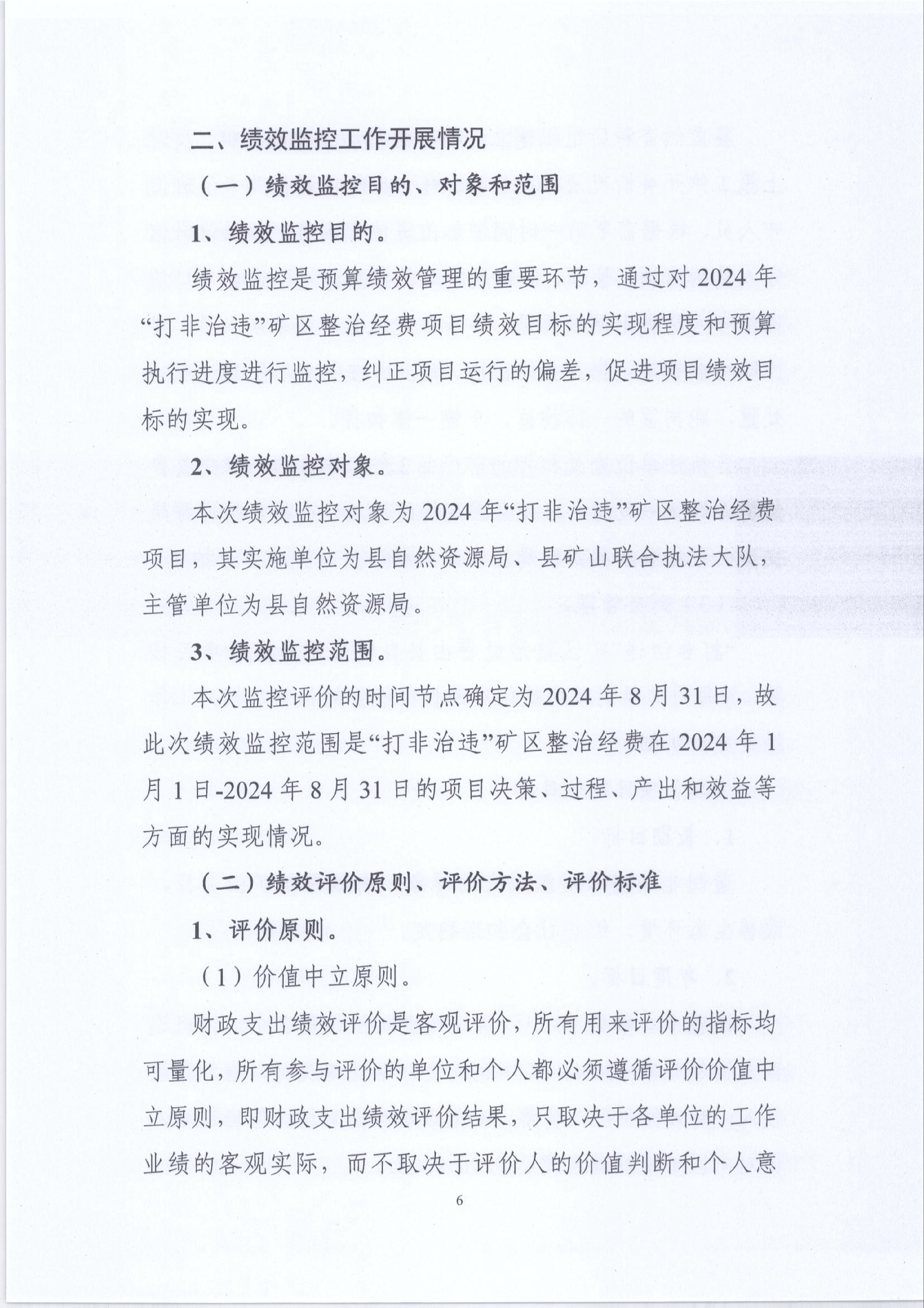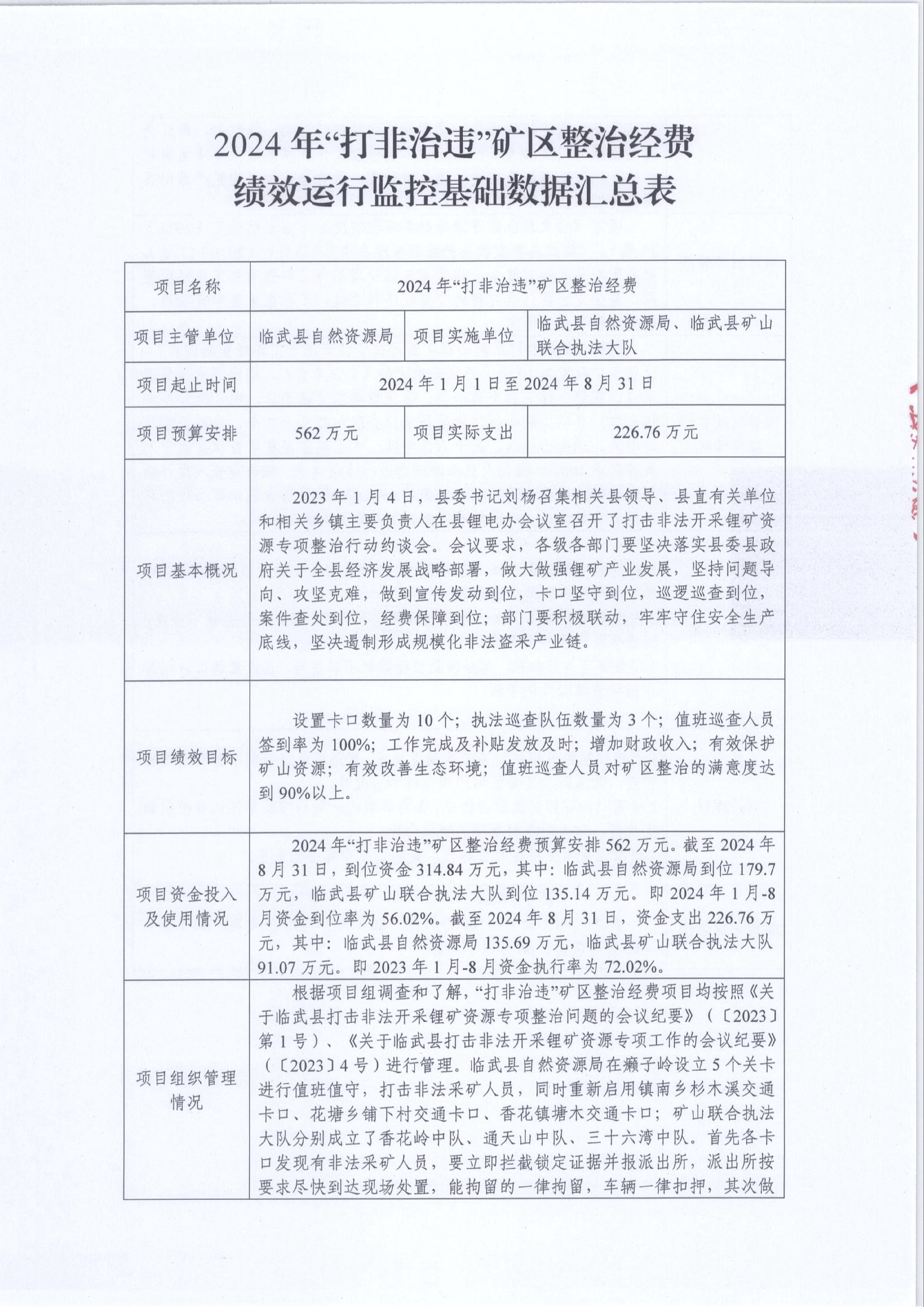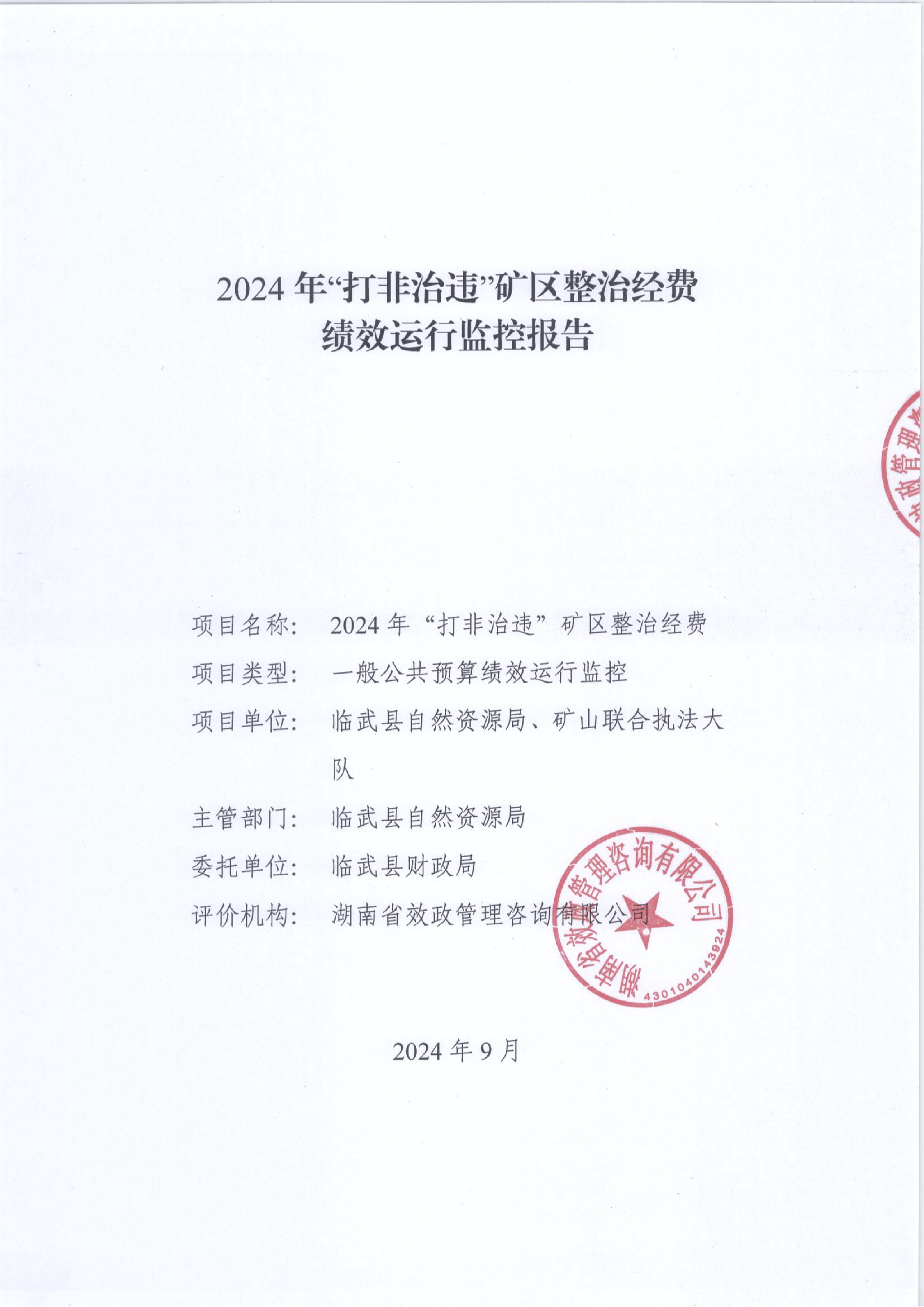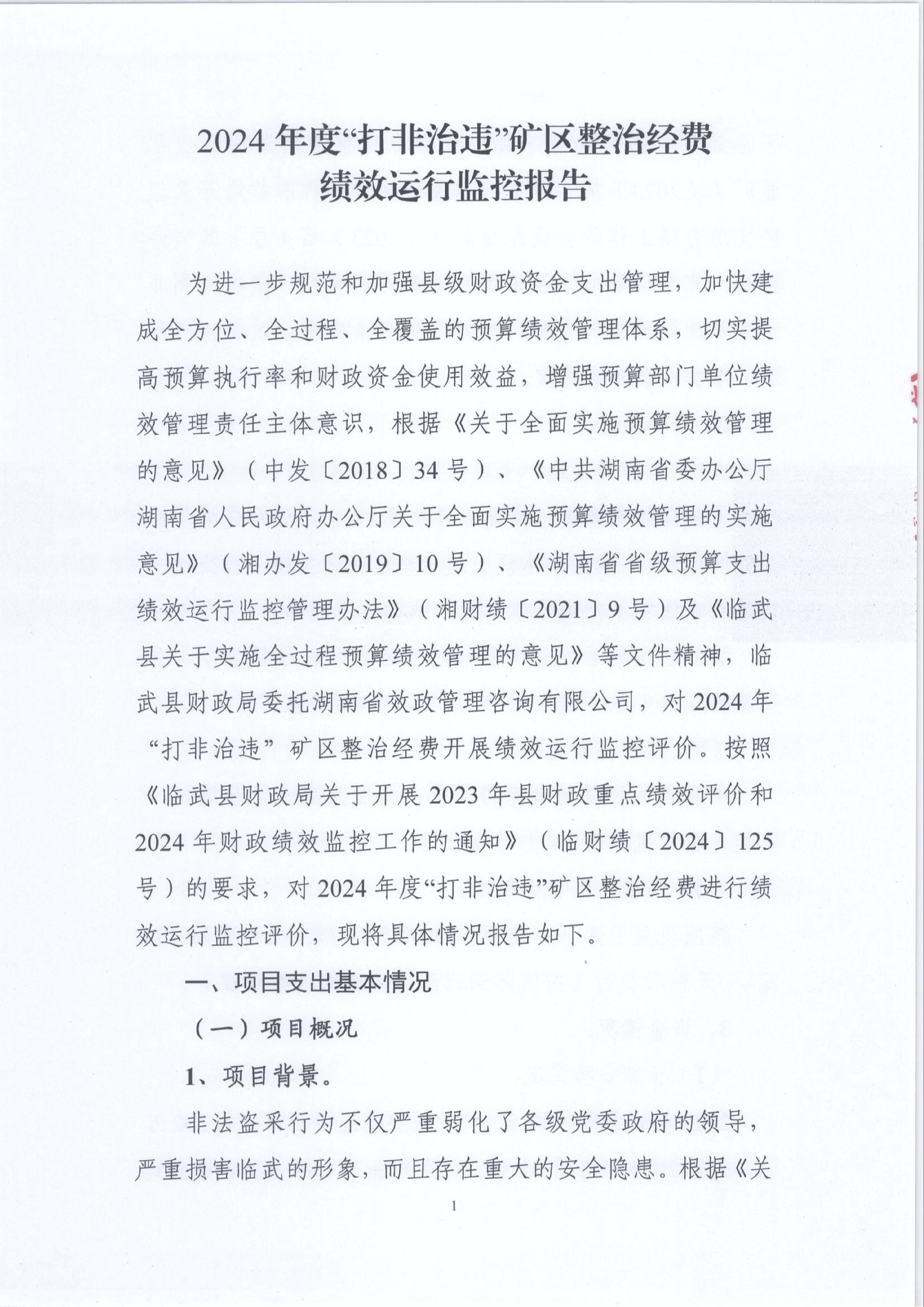 2024年“打非治违”矿区整治经费绩效运行监控报告
