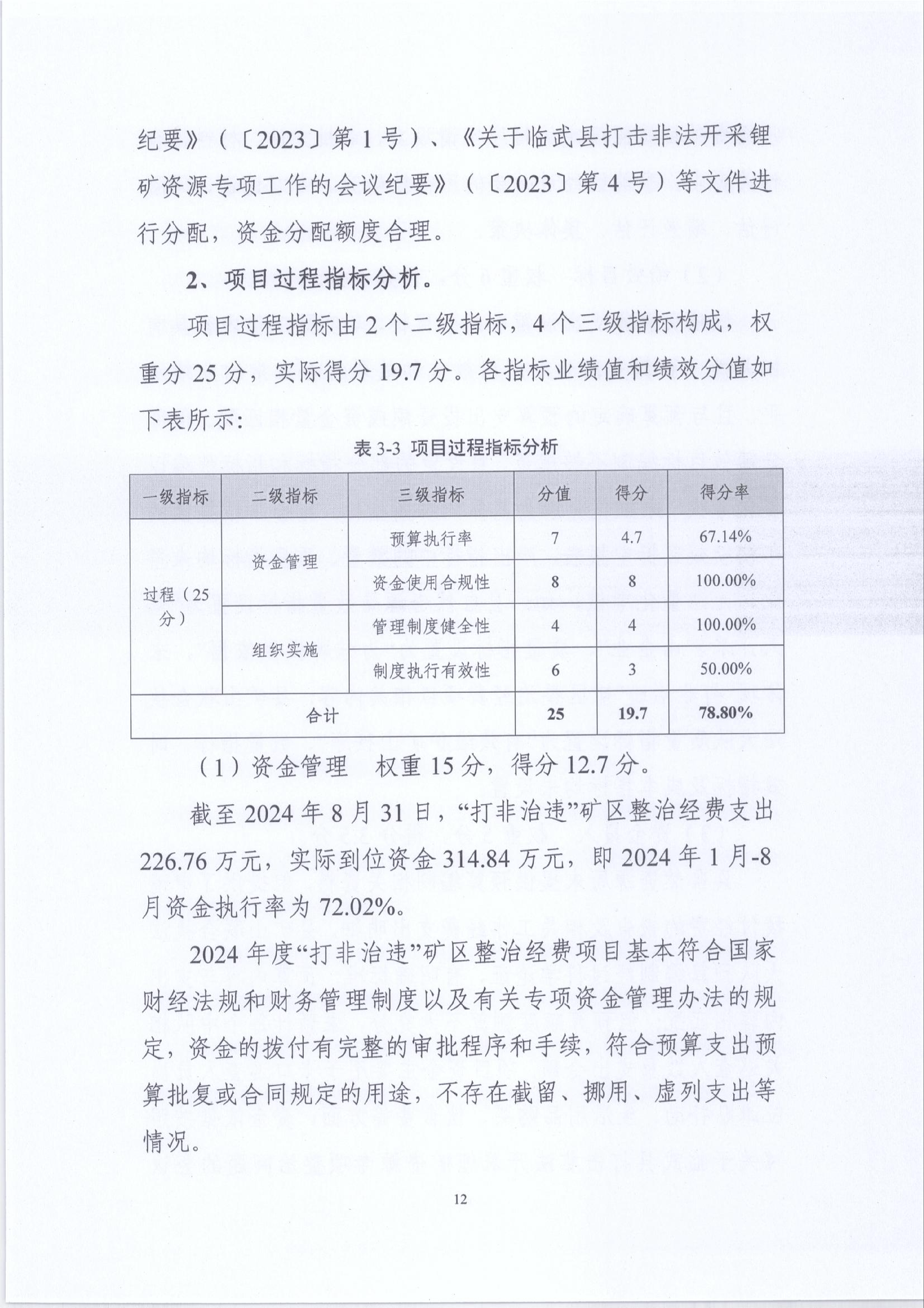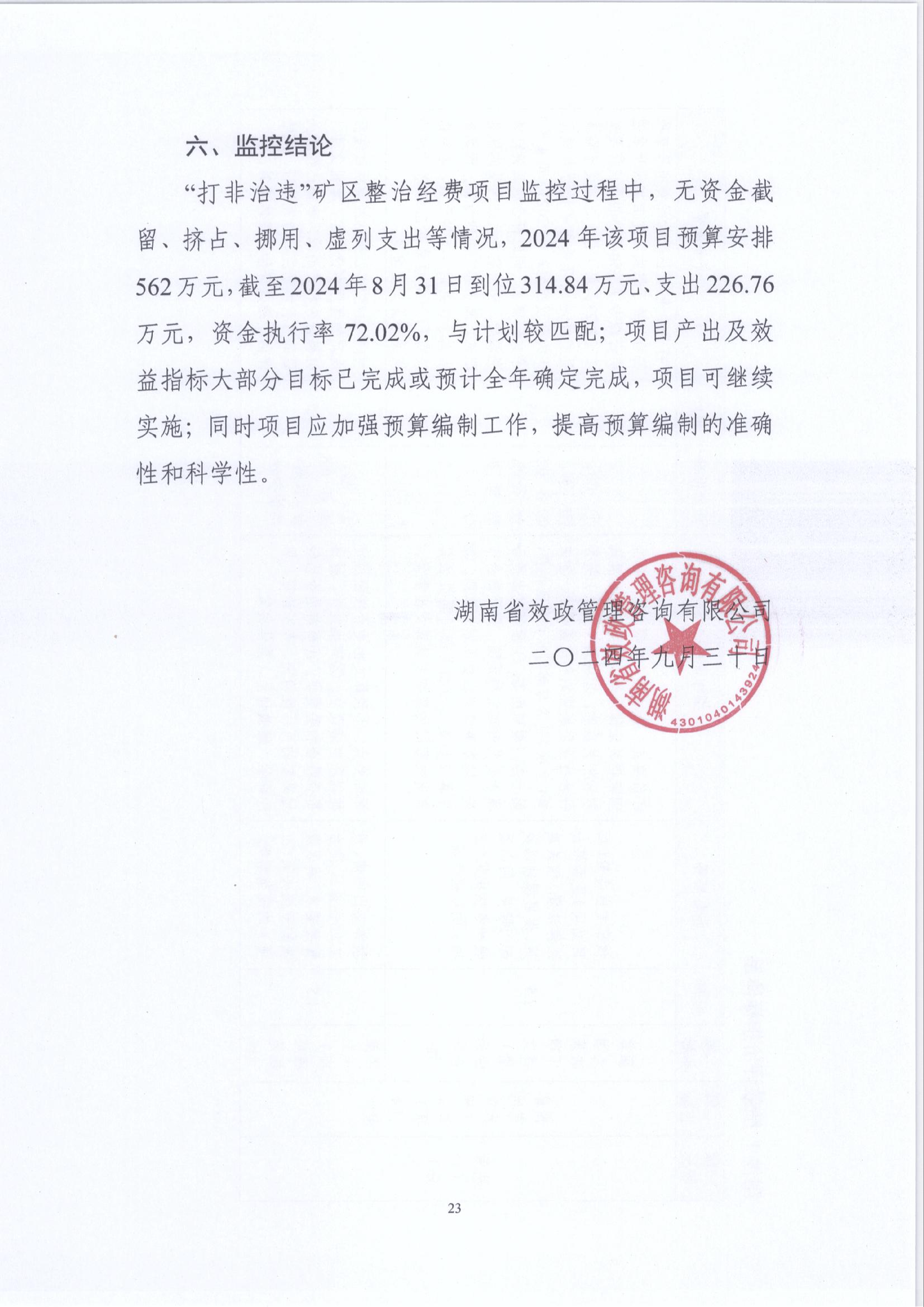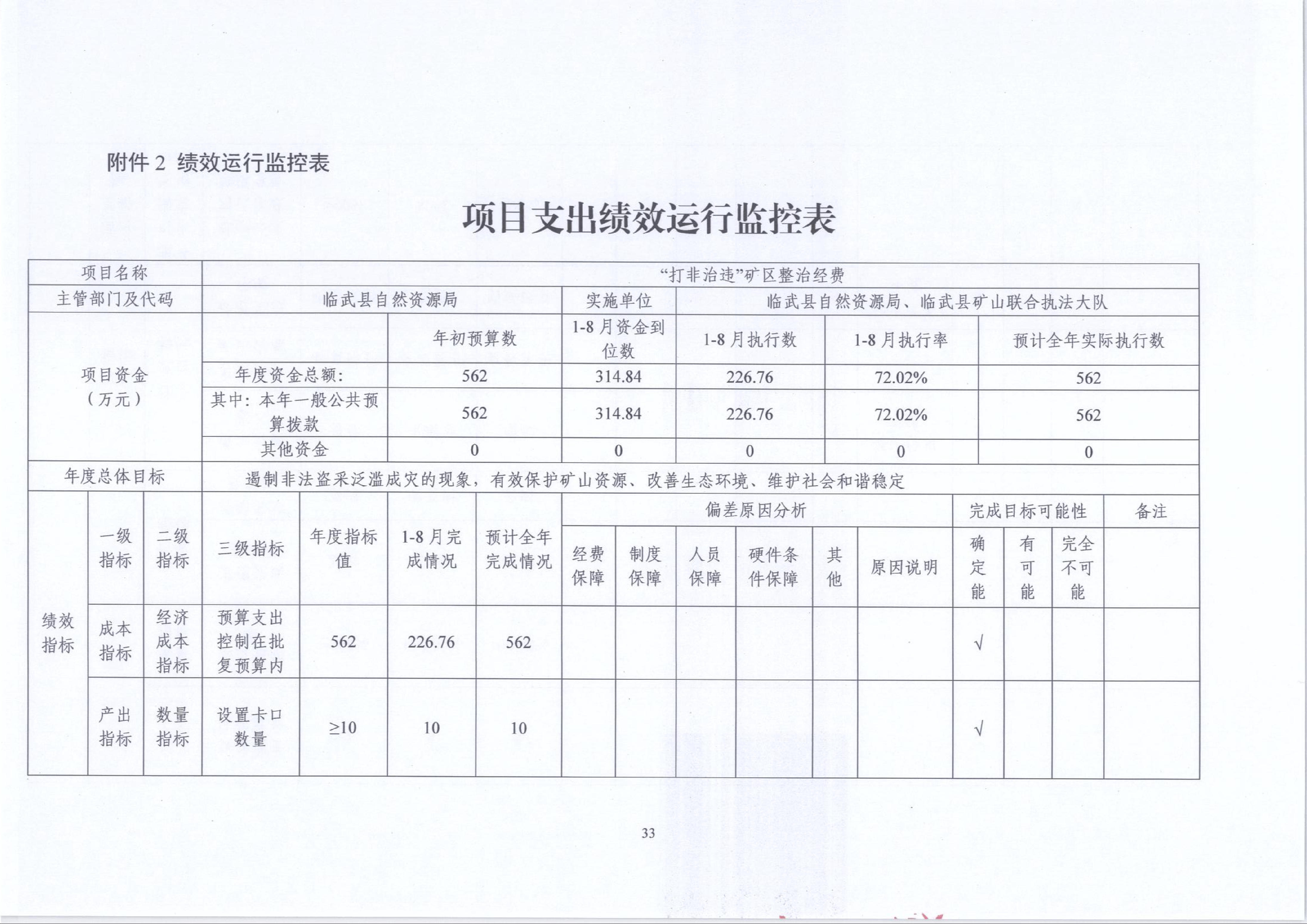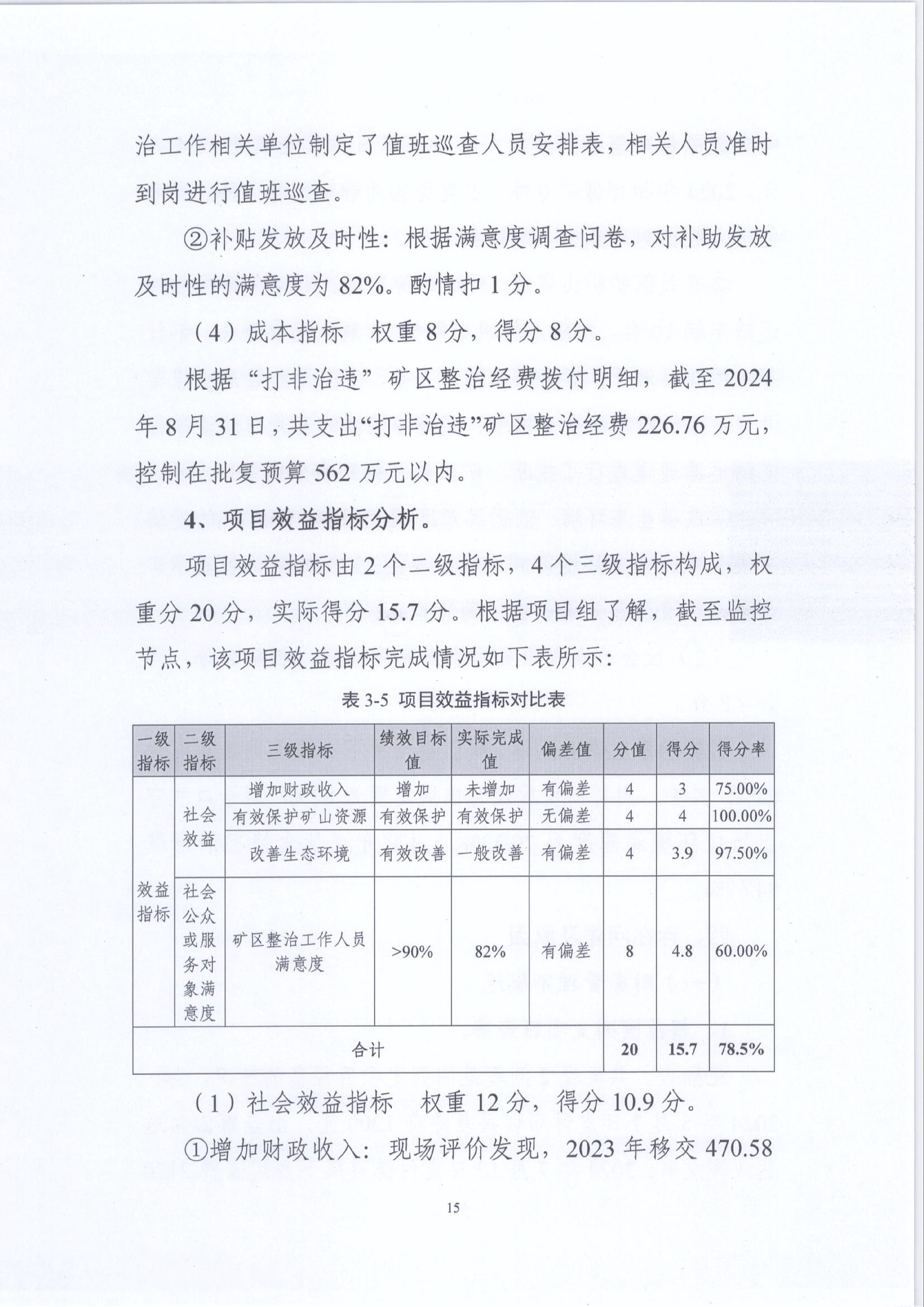 2024年“打非治违”矿区整治经费绩效运行监控报告