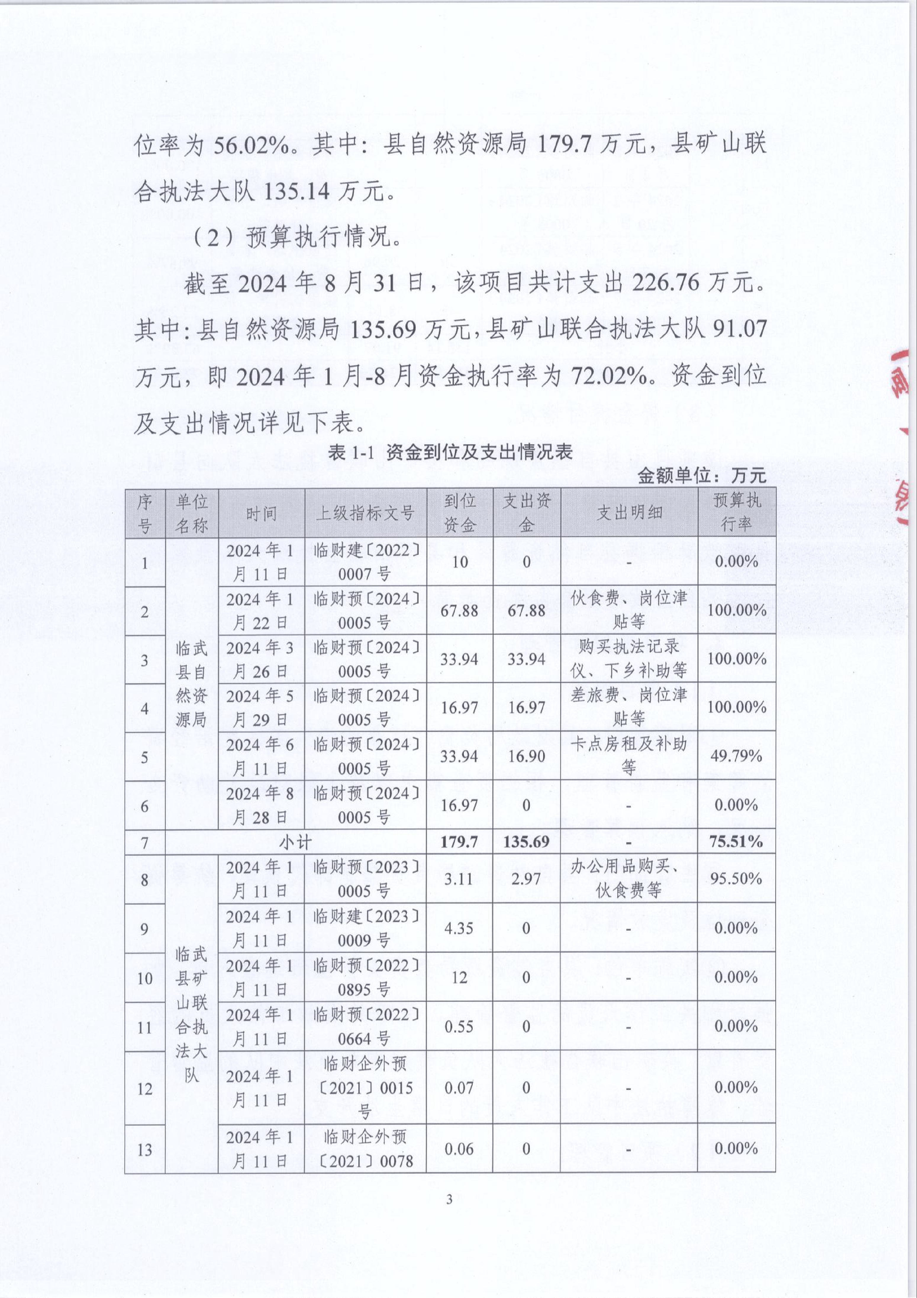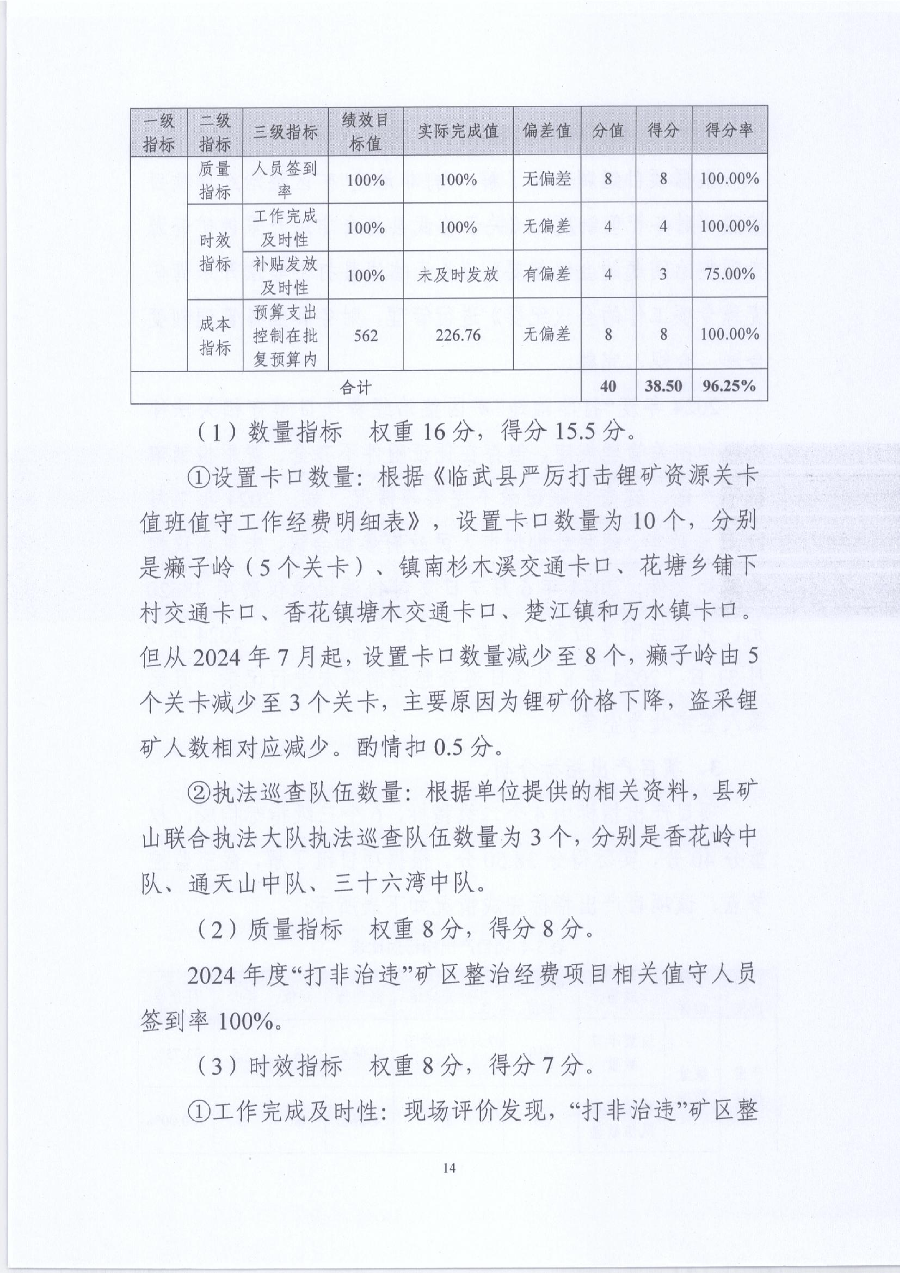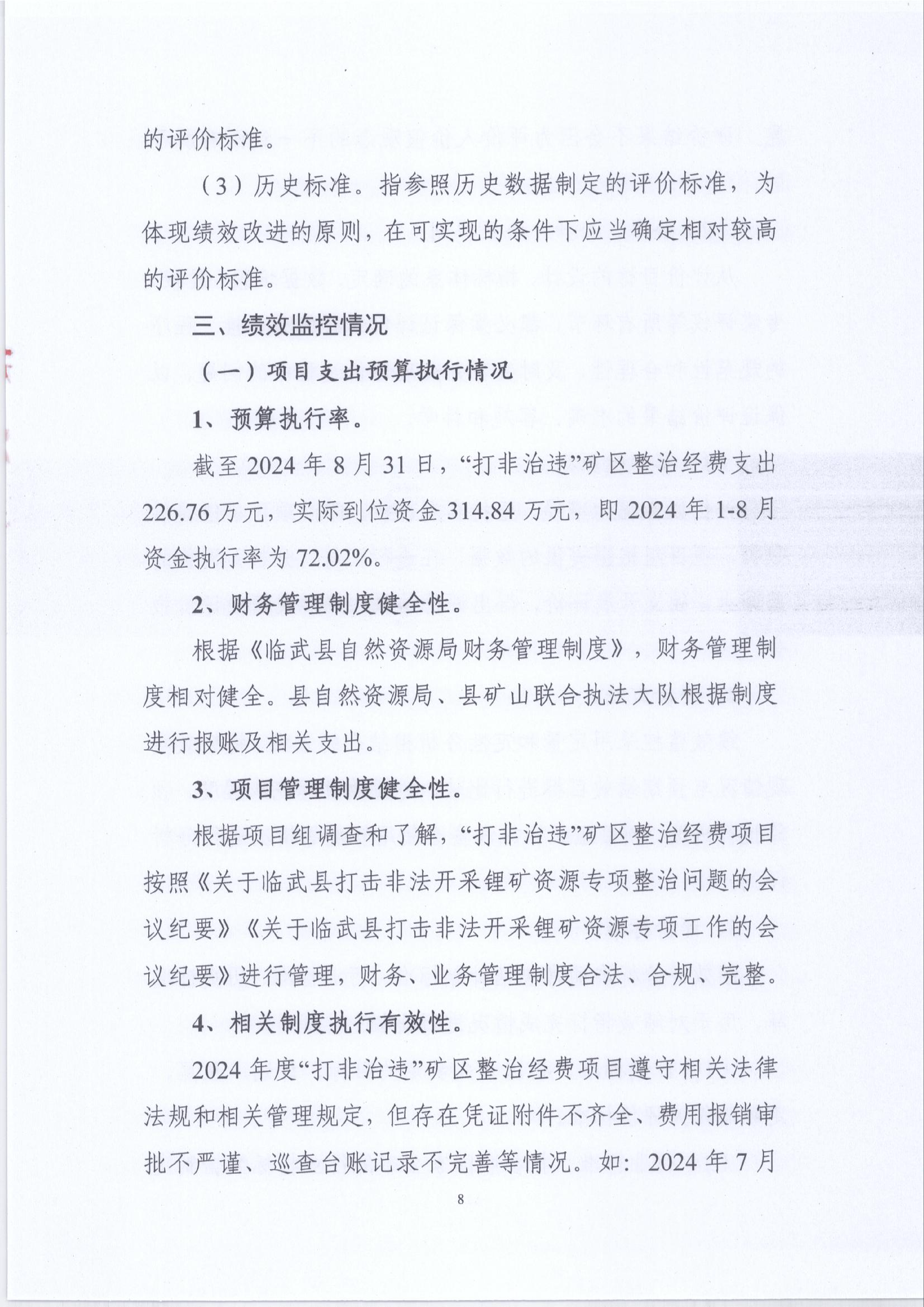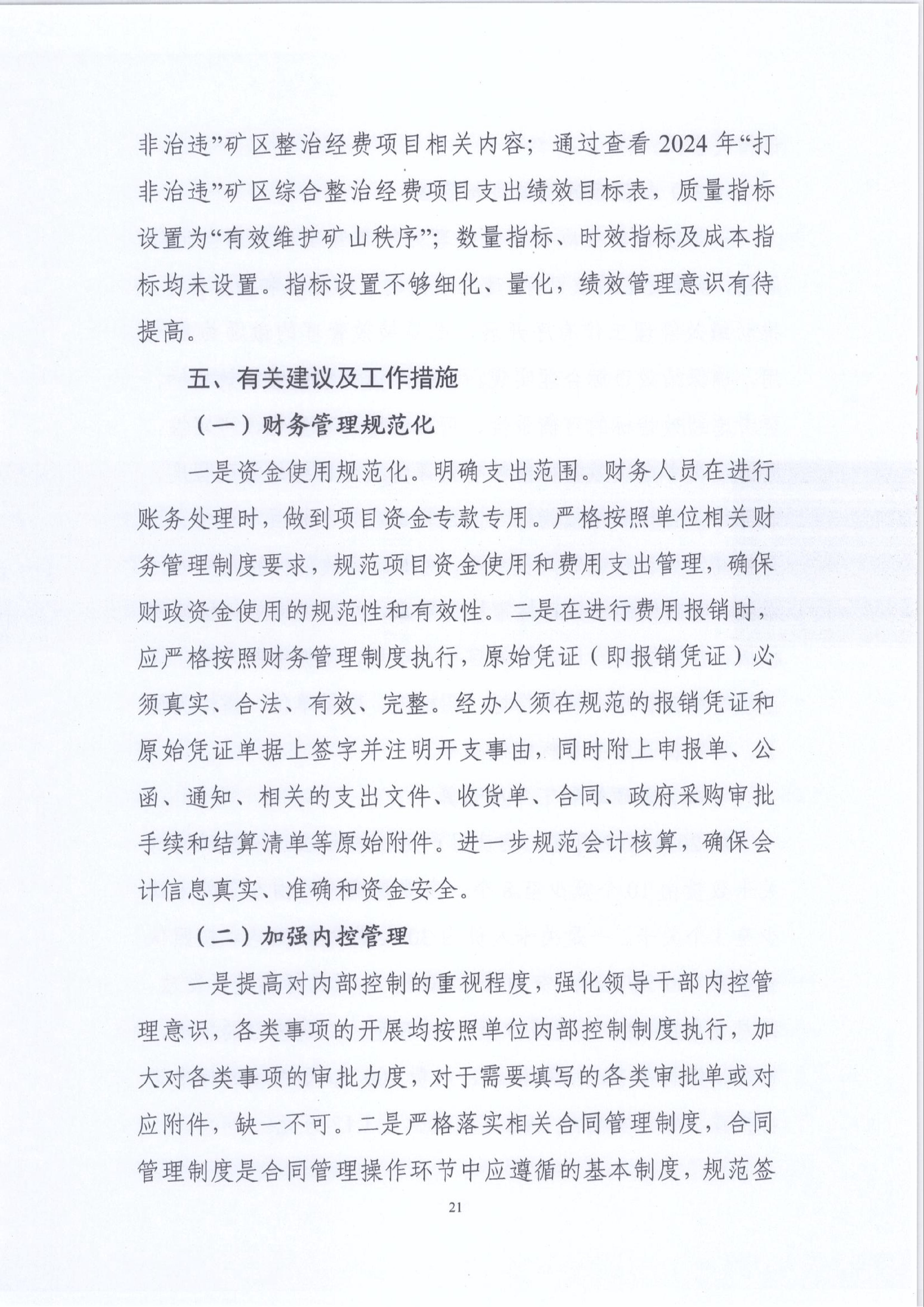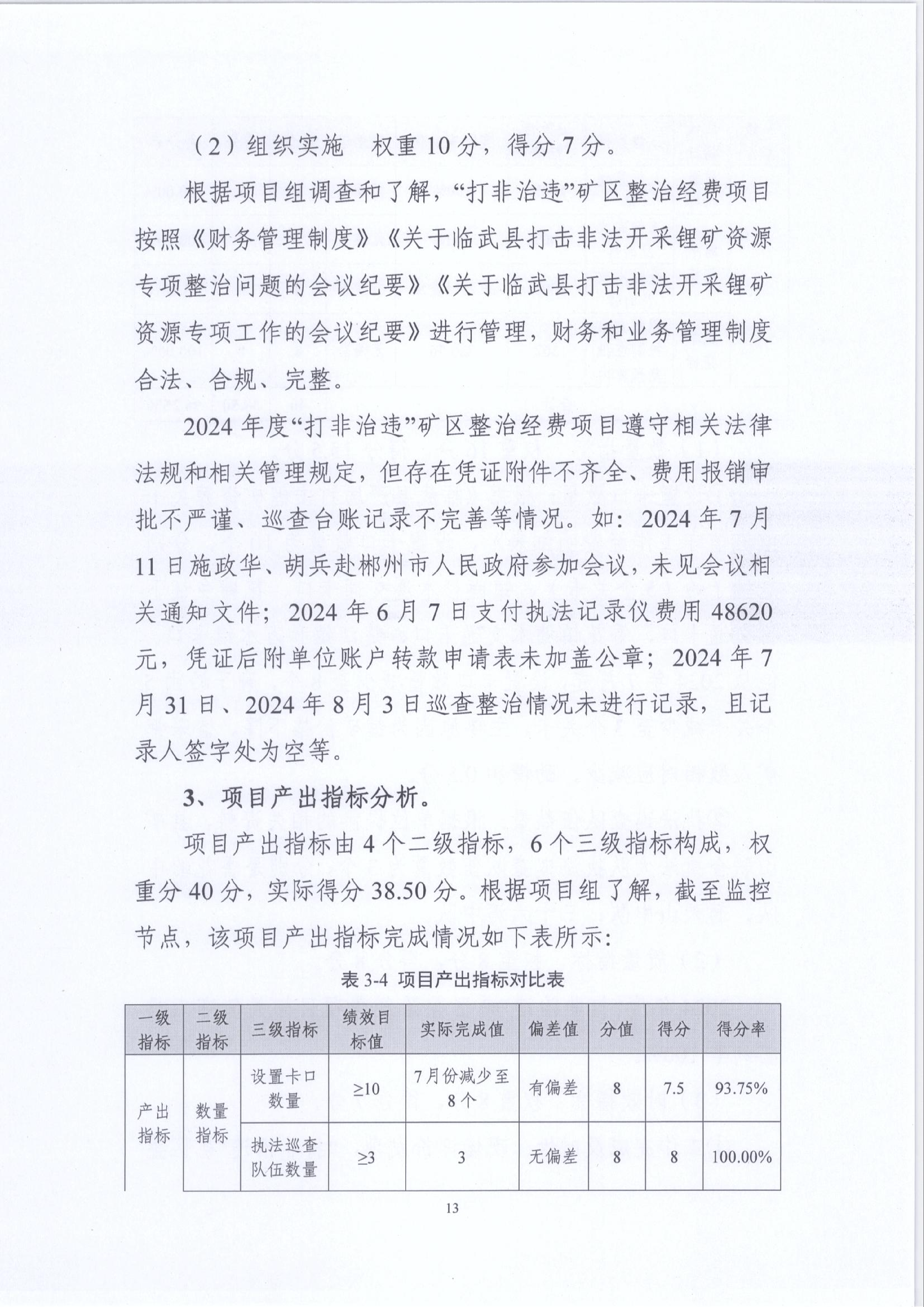 2024年“打非治违”矿区整治经费绩效运行监控报告